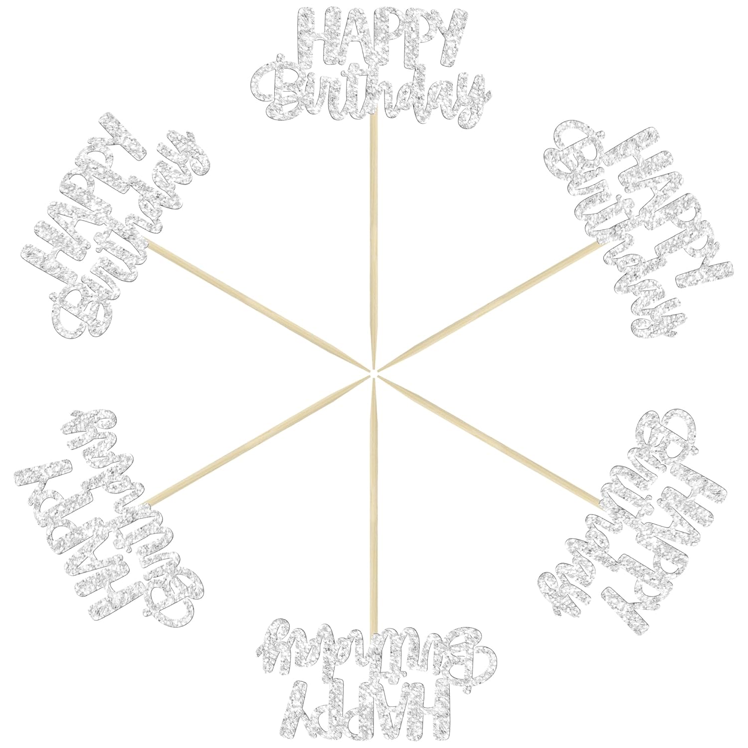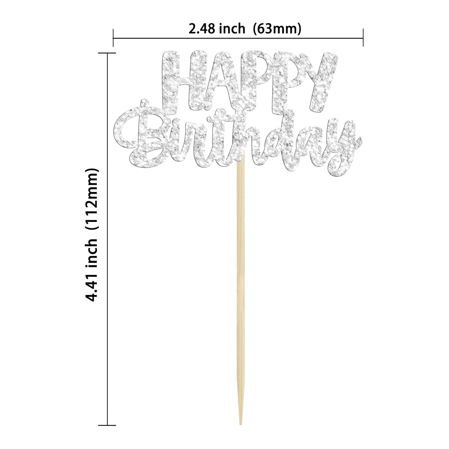 - ๐๐Premium Material: These Silver Happy Birthday Cupcake Toppers are made of high quality 300 gram glitter card stock and food-grade toothpick, very safe to put them on cakes, cupcakes, ice cream, fruits, pie, dessert, cheese or any dish and food appetizer you want to decorate.