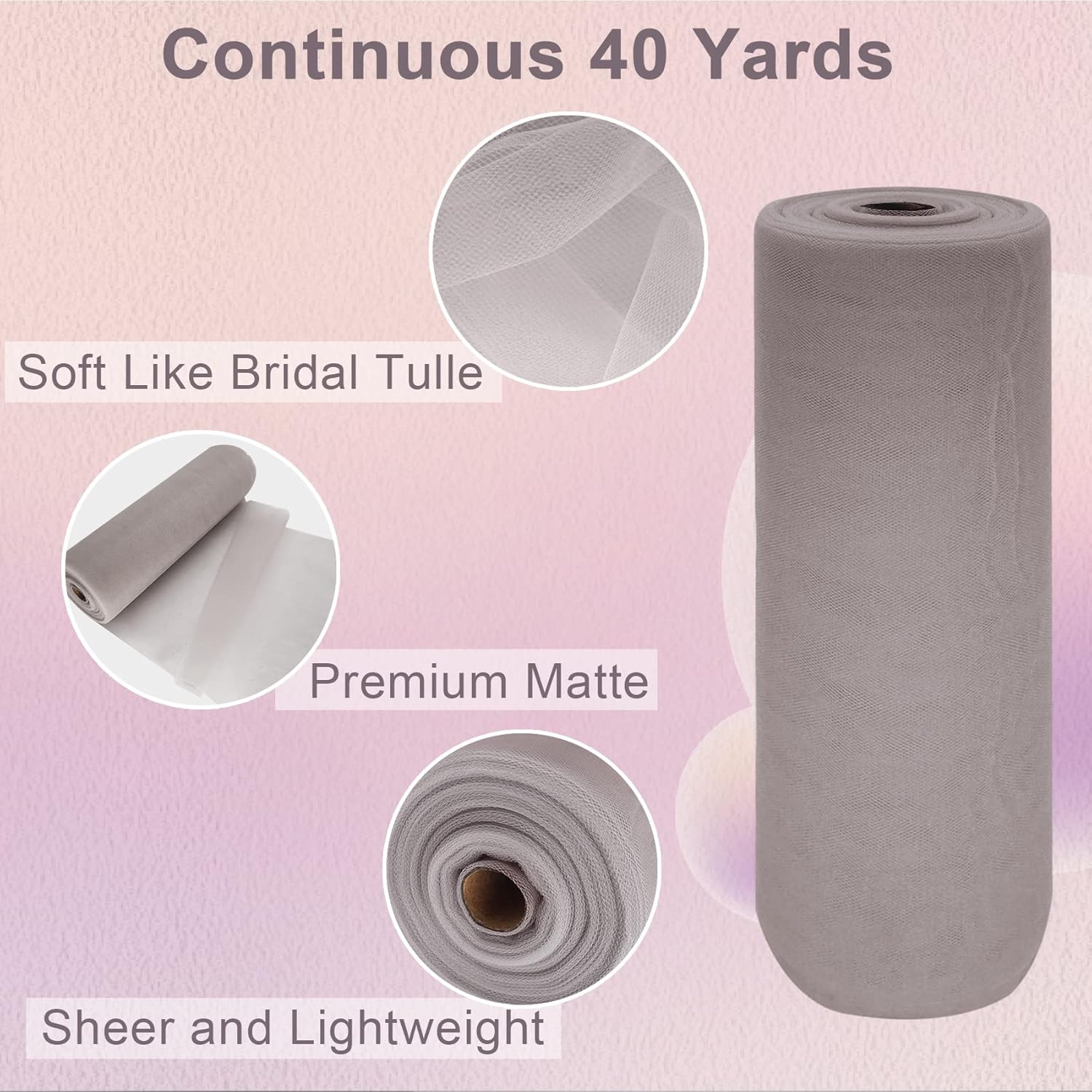 Grey Tulle Fabric Roll Spool Bolt (54 Inch by 40 Yards) Large Tulle Wedding Party Decoration, Tutu Skirt, Table Runner, Gift Wrapping, Bridal Shower, Soft & Drape (Gray)
