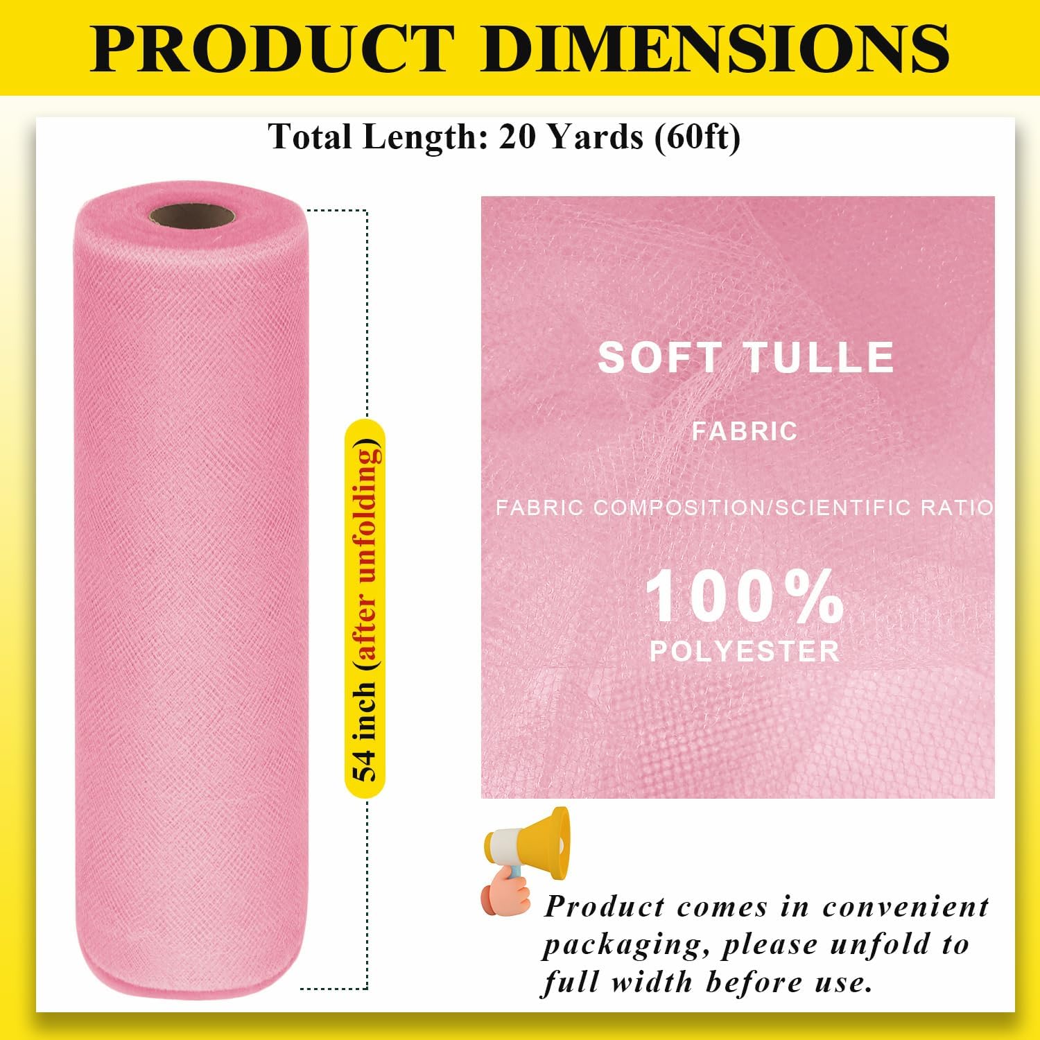 54" x 20 Yards Pink Tulle Fabric Rolls - Tutu Spool Bolt for DIY Wedding Decoration, Baby Shower Tutu Skirt, Gift Wrapping - Large Matte Tulle, Roll Packaging