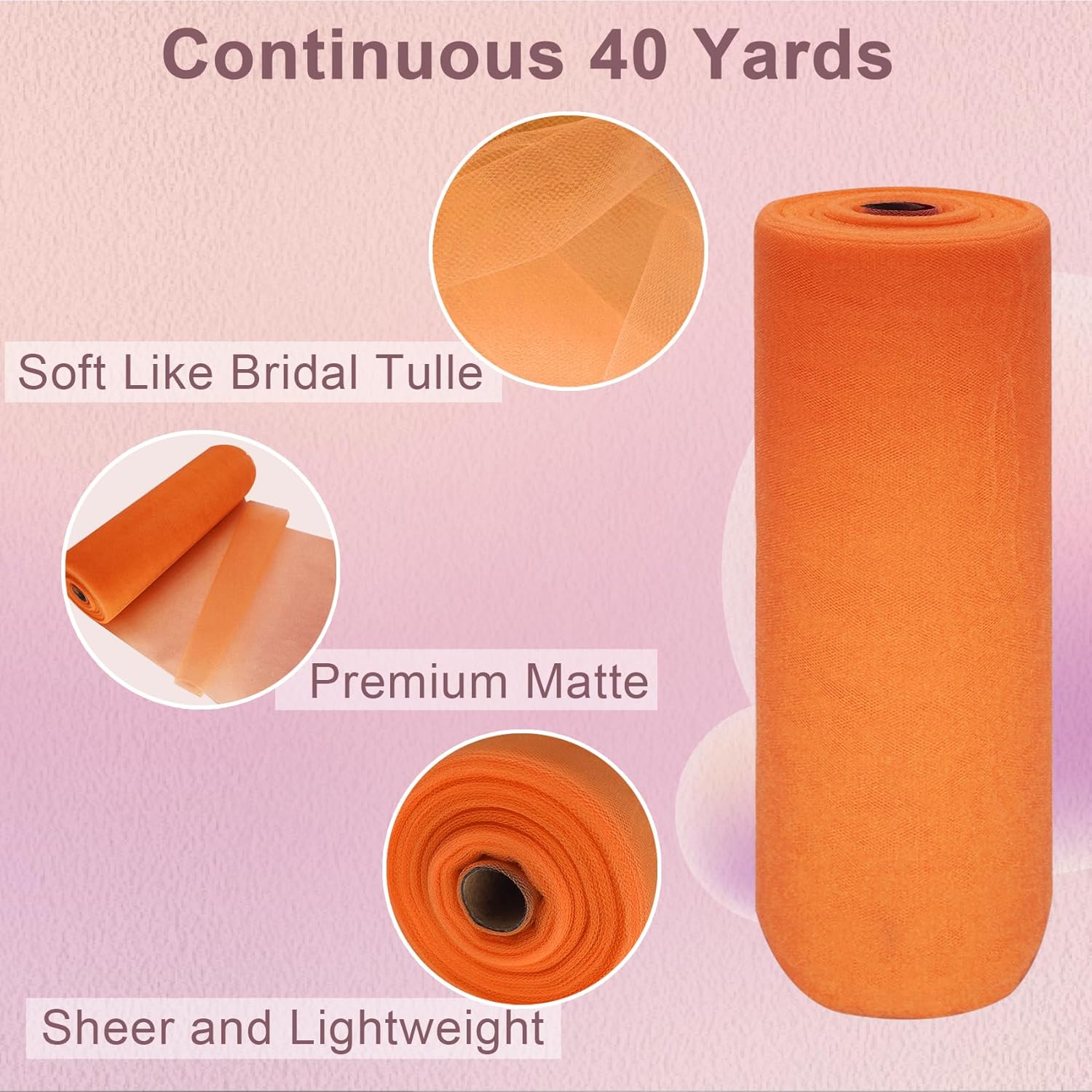 Orange Tulle Fabric Roll Spool Bolt (54 Inch by 40 Yards) Large Tulle Wedding Party Decoration, Tutu Skirt, Table Runner, Gift Wrapping, Bridal Shower, Soft & Drape (Orange)