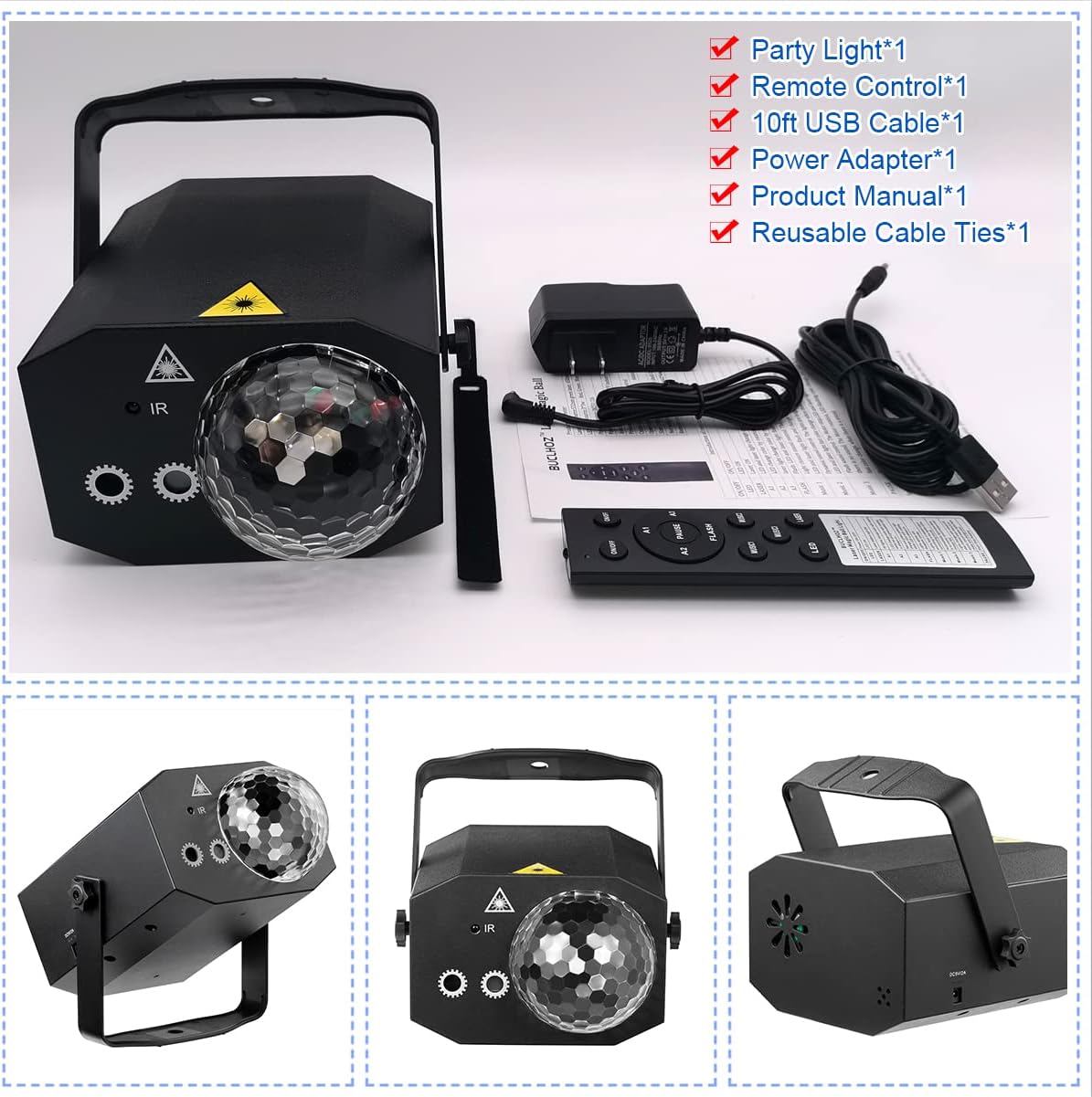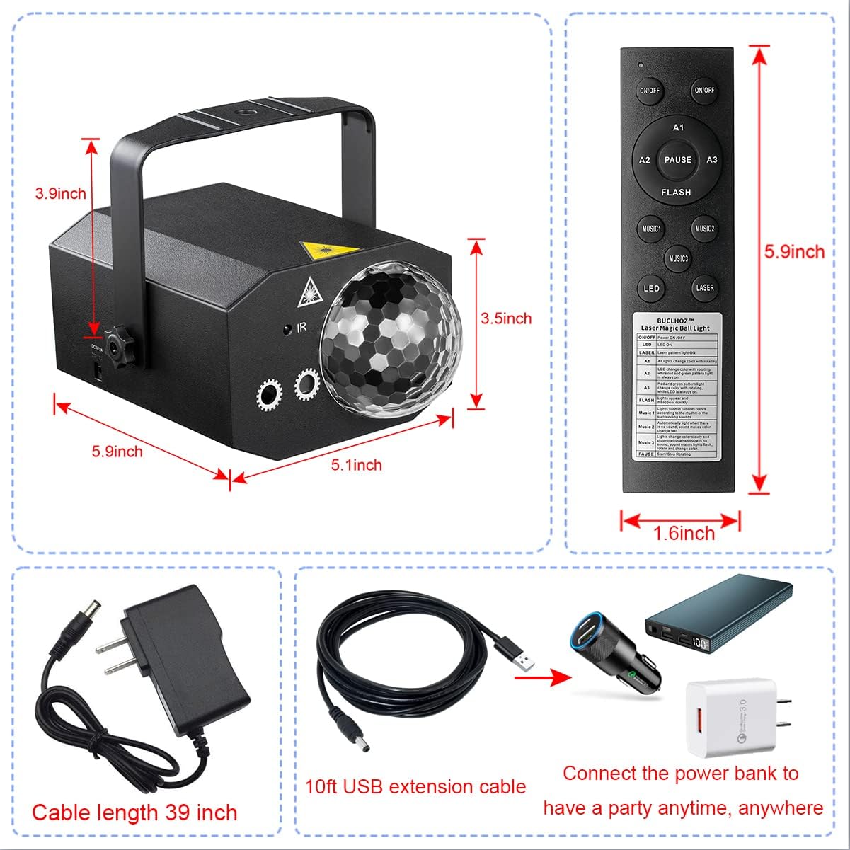 - Combination effect: BUCLHOZ Party lights,Combining the dazzling effect of stage lighting and the colorful atmosphere of a disco ball, you can choose LED mode or pattern projection mode or both through the remote control,such multi-effect combination to create a more wonderful atmosphere.
