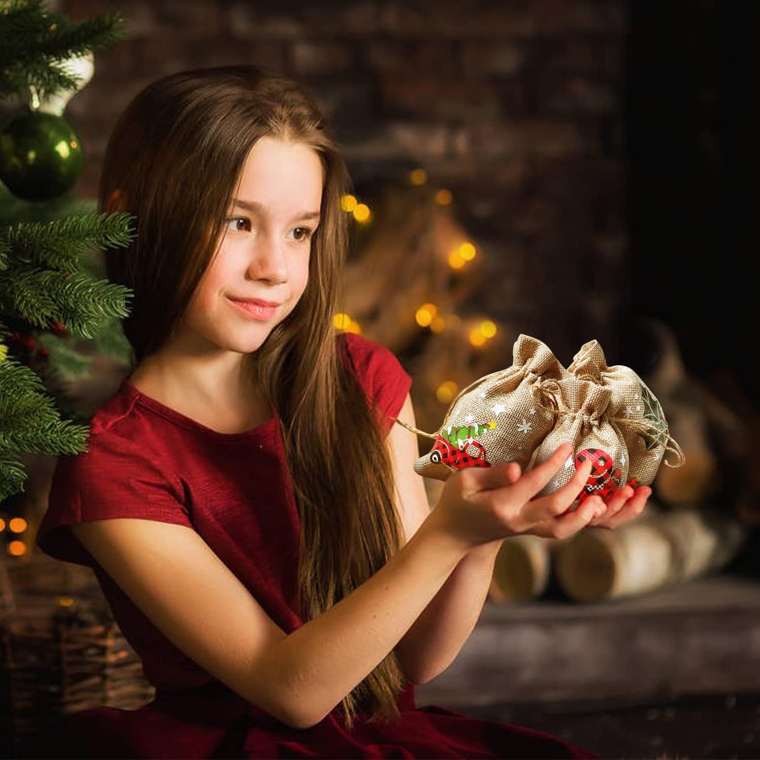 - Perfect Size: 10 x 15cm / 4 x 6 inch. The Christmas burlap bags lightweight with a suitable size for Christmas small favors. Perfect for Children candy gift, watches, chains, merchandising, bracelets, weddings, stones, gifts, crafts, jewelry, parties and so on.