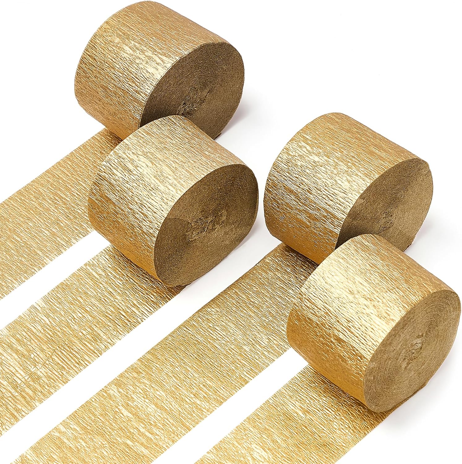 PartyWoo Gold Crepe Paper Streamers 4pcs 328ft Pack of Gold Crepe Paper for Wedding Birthday Baby Shower Engagement Anniversary New Year Eve Graduation Party Decorations(1.8 Inchx82 Ft/Roll)