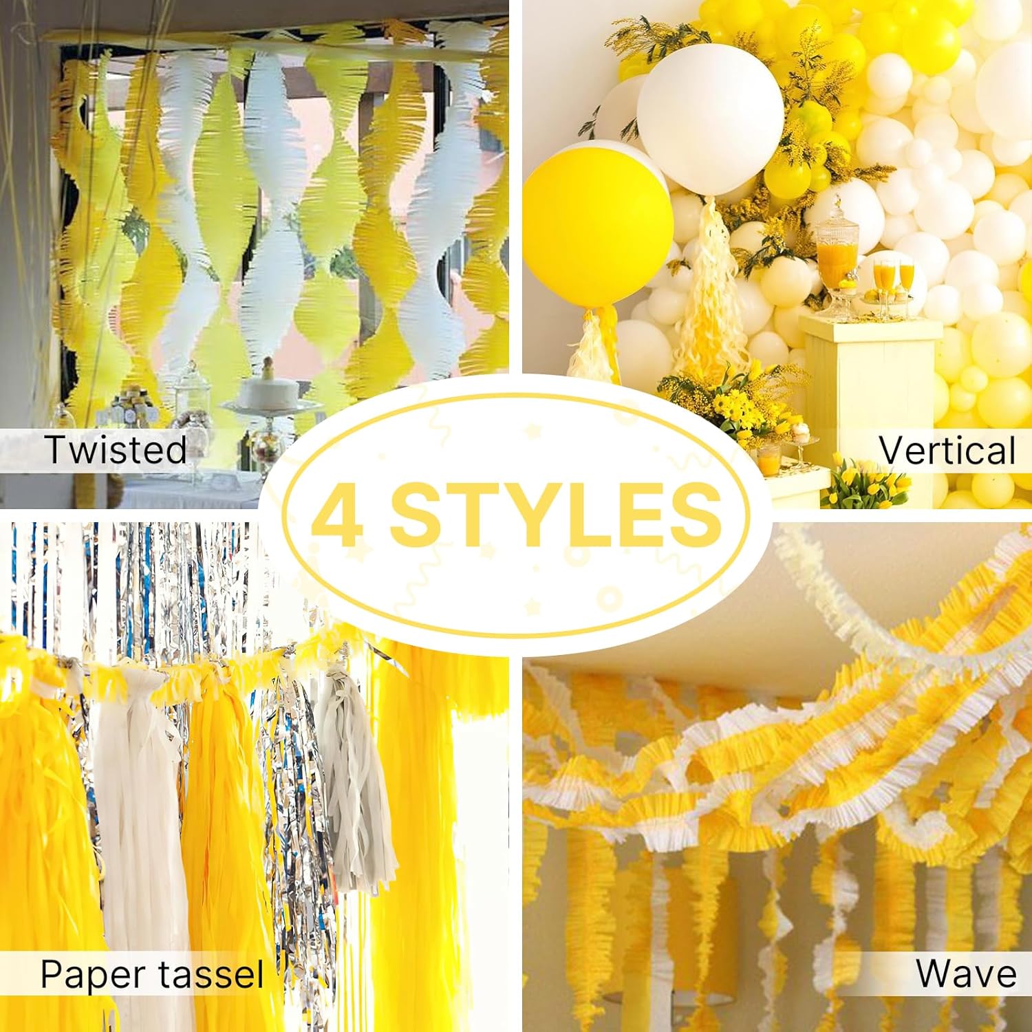 PartyWoo Crepe Paper Streamers 4 Rolls 328ft, Pack of Yellow Crepe Paper for Party, Wedding, Birthday, Baby Shower Decorations (1.8 Inch x 82 Ft/Roll)