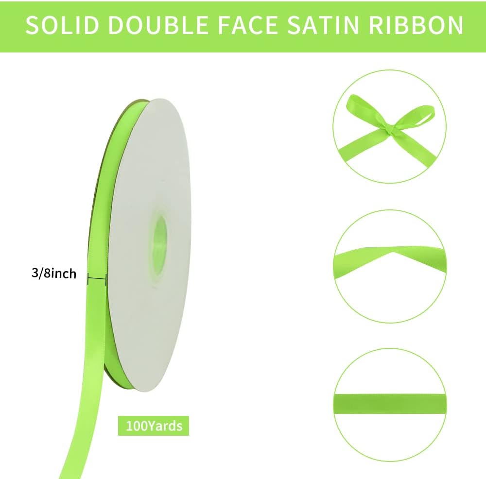 - Dimensions- High grade single face solid satin ribbons 3/8 inch(1cm)wide/spool, these ribbon come in a convenient 100 yards packages so that you have plenty for decorating.