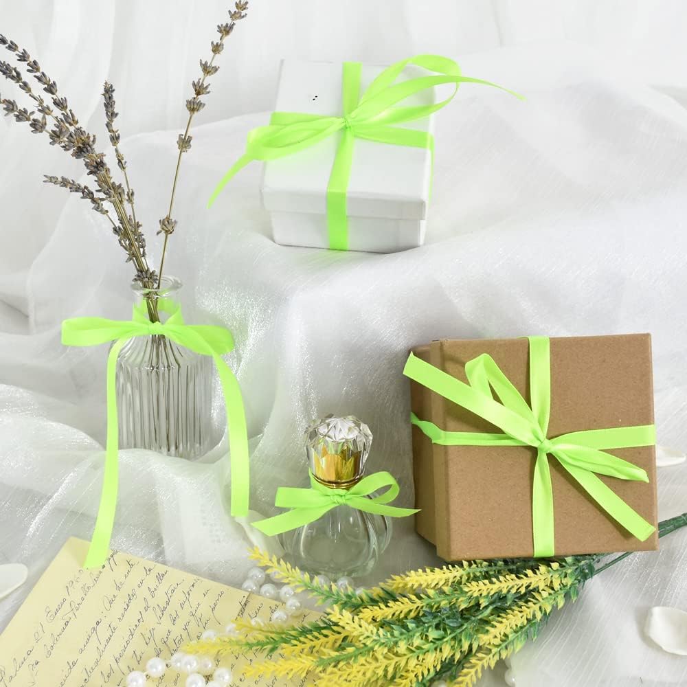 TONIFUL 3/8 Inch x 100yds Fluorescent Apple Green Satin Ribbon Thin Solid Fabric Ribbons Roll for Gift Wrapping Floral Hair Balloons Craft Sewing Party Wedding Decoration Valentine's Day Halloween