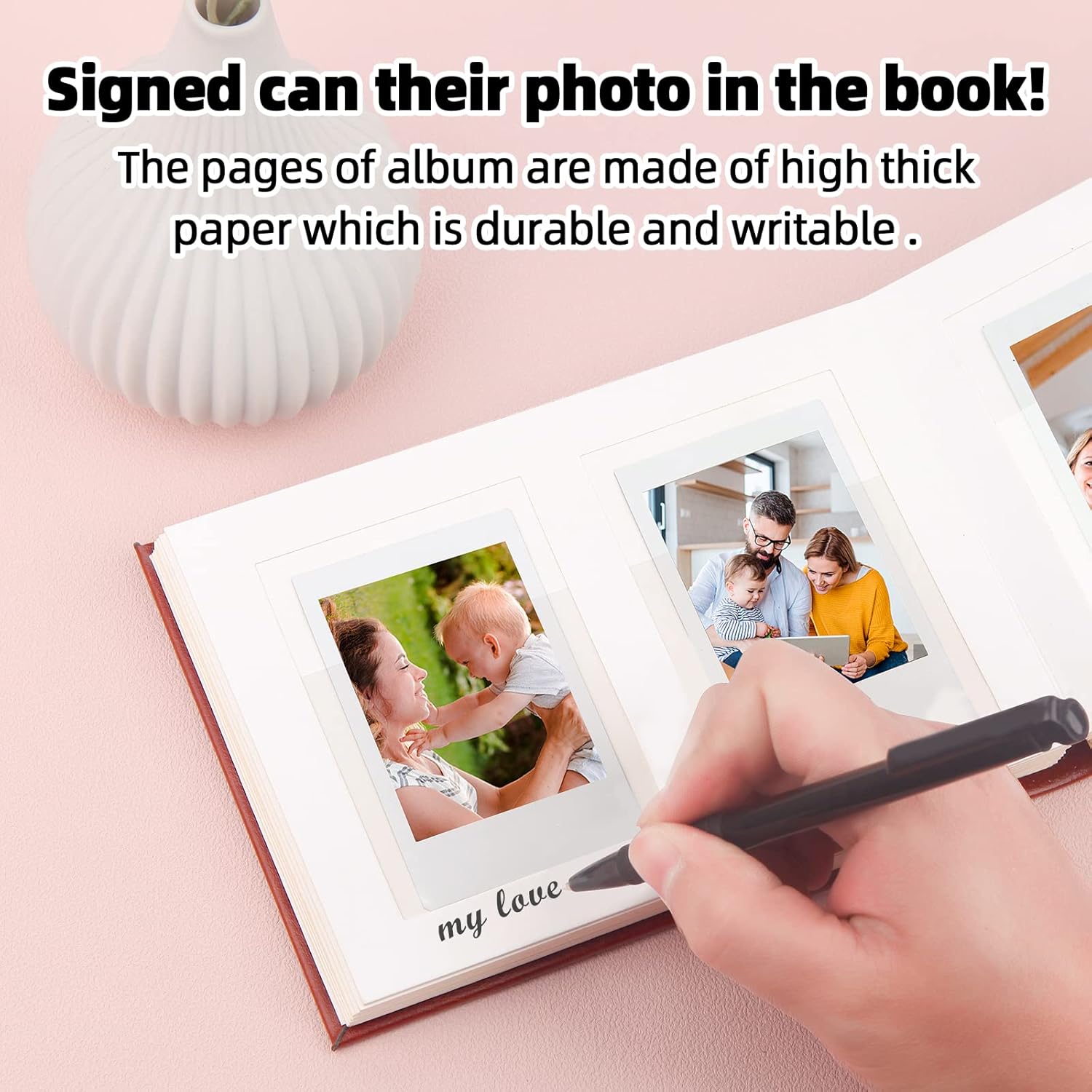 - Instax Album Scrapbook: Each instax mini photo album has 16 clear pockets that can hold up to 64 photos vertically. Share instax mini photo book with family and friends for wedding, baby shower, graduation, travel, birthday, anniversary, Christmas & more