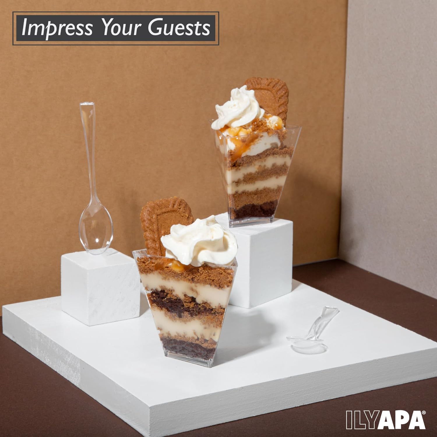 - Satisfaction Guaranteed - ILYAPA stands behind all of its products 100%. We use strong durable packaging to guarantee that your mini plastic dessert cups arrive in the best condition possible.