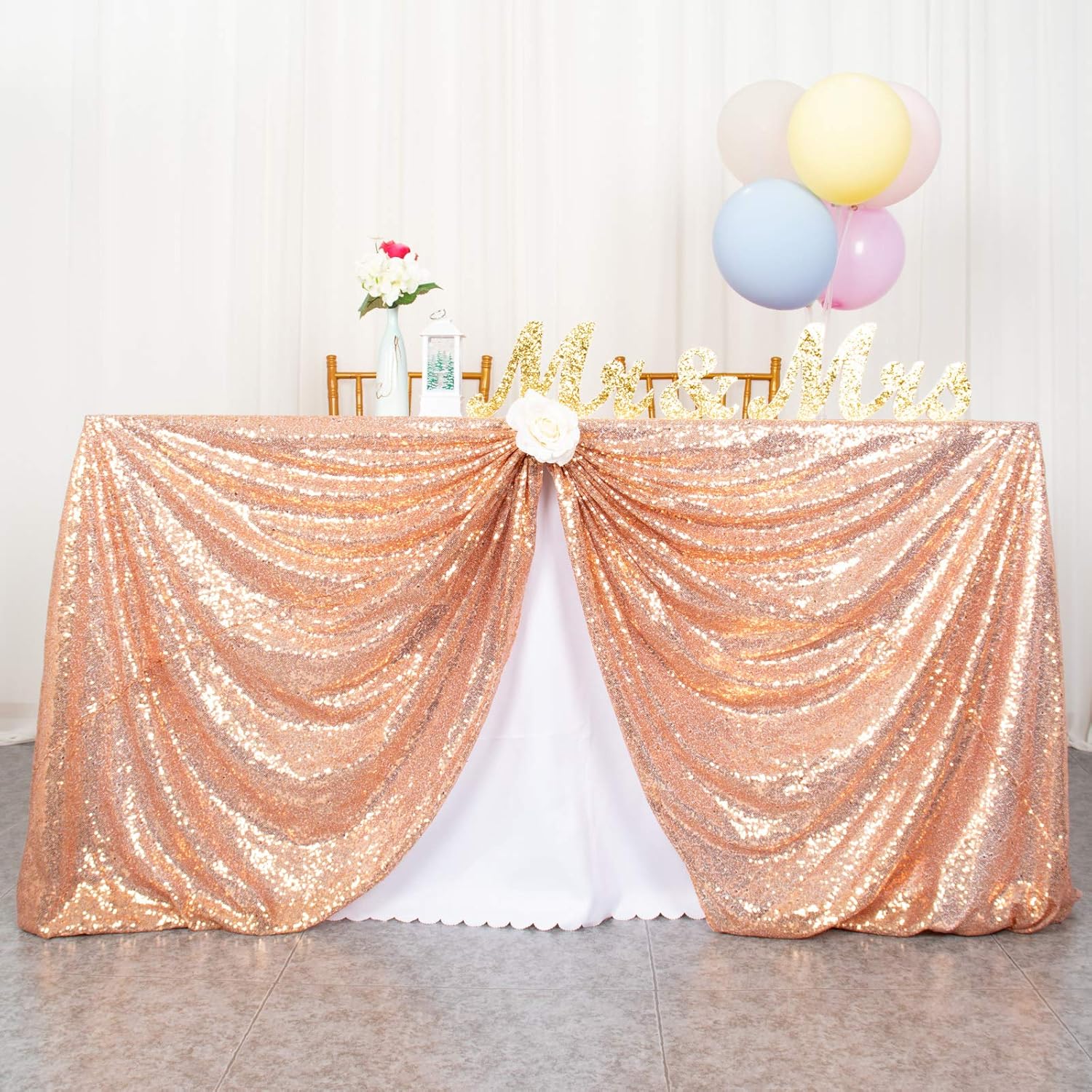 - β€ NO DROPPING SEQUINS : serged edges avoid falling sequins, beautiful colors of sequin tablecloth ensure your wedding party birthday christmas prom decoration dessert cake tables more elegant and sparkly