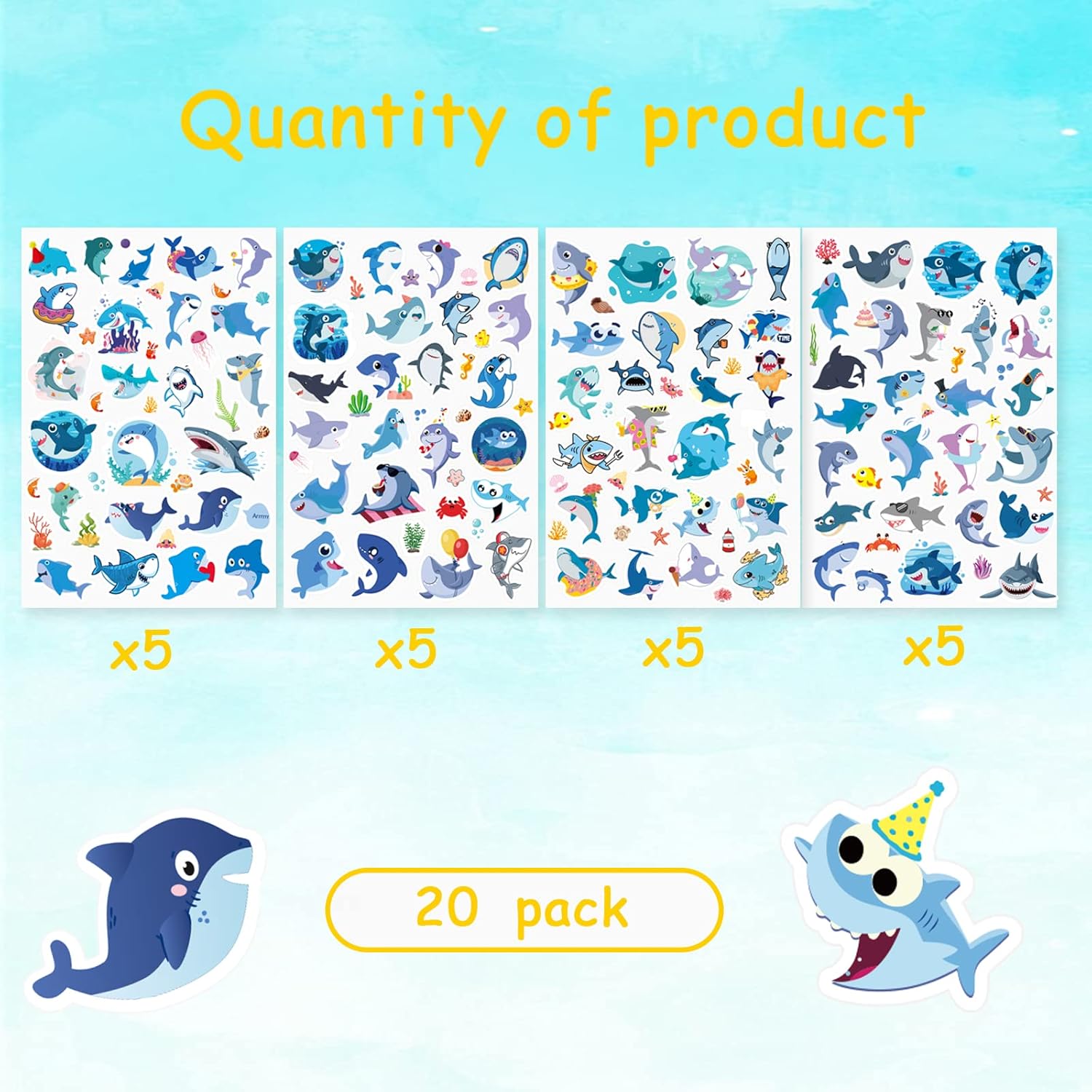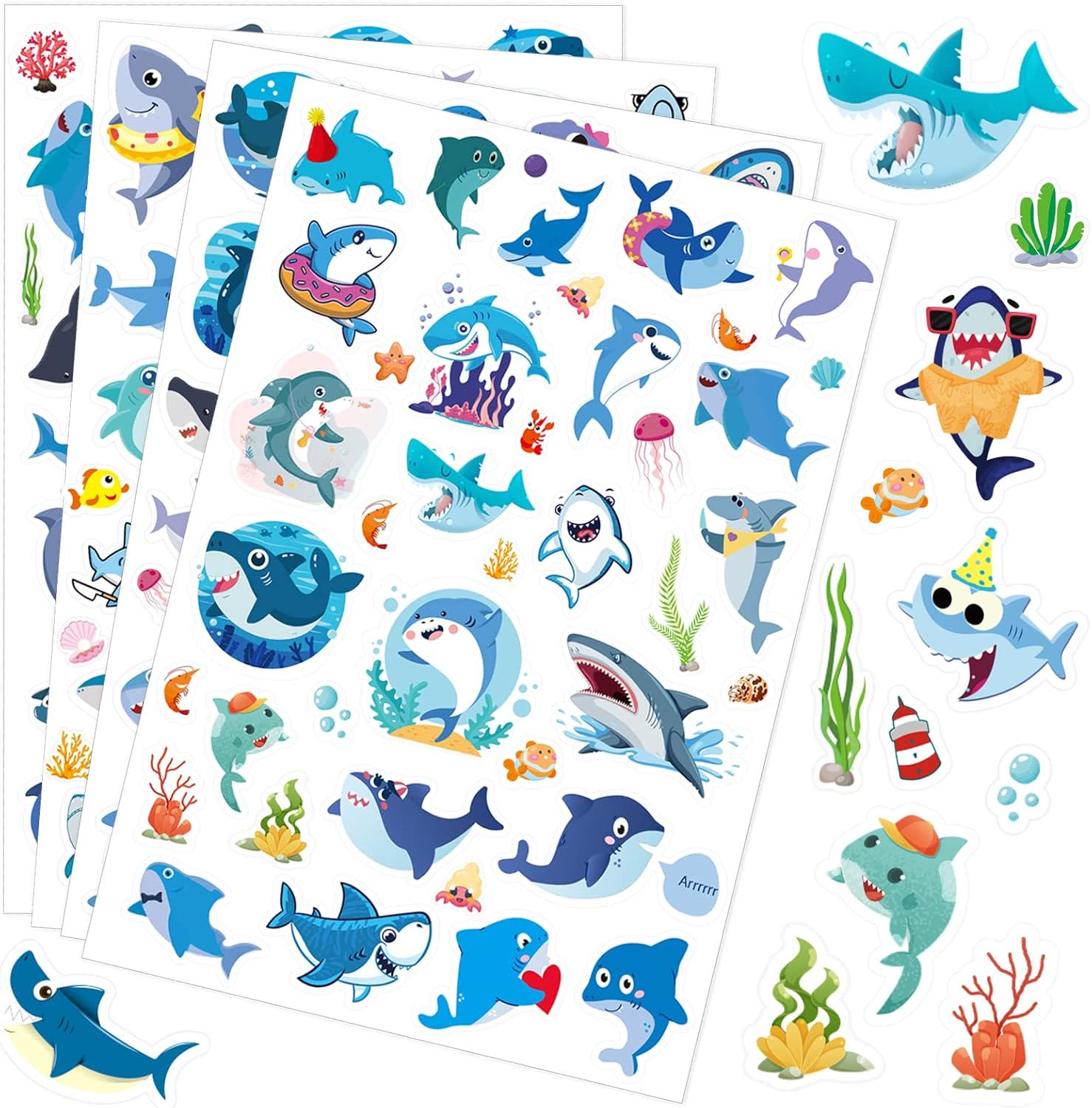- WIDE APPLICATIONS -- These shark adhesive stickers are great for envelopes, invitations, party favors, party goodie bag, gift bags, gift wrap, gift boxes, greeting cards, scrapbooks, decorative DIY cake/cupcake toppers and so on. Those cute ocean animal adhesive stickers decorations will add a nice touch the birthday party.
