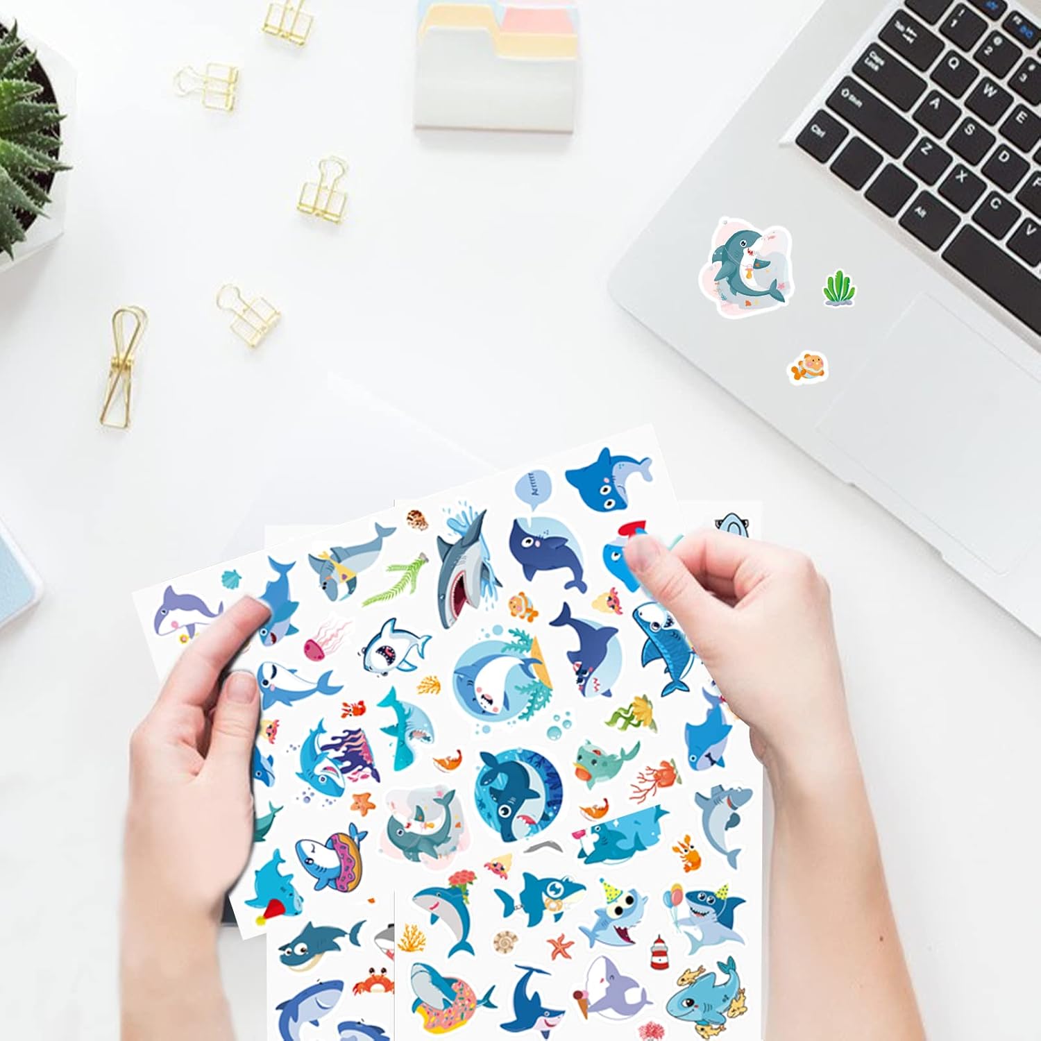 Cool Shark Stickers 755 Count Ocean Sea Animal Tropical Fish Shark Adhesive Decal Stickers for Boys Girls Birthday Invitations Under The Sea Party Goodie Gifts Bags Sticker Decor Class Rewards