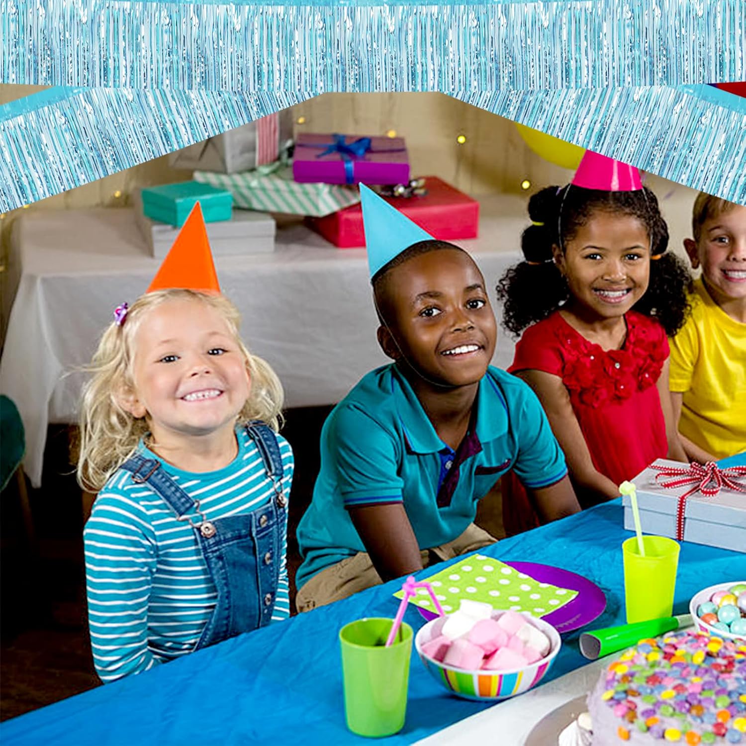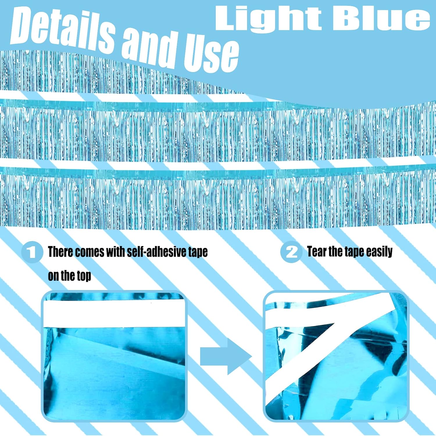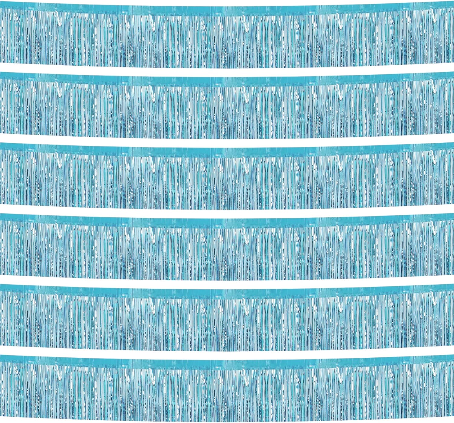 6 Pack 10 Feet Foil Fringe Garland Metallic Tinsel Streamers Banner Wall Hanging Curtain Backdrop Banner for Parade Floats, Thanksgiving, Christmas, Birthday, Halloween Party Decorations(Light Blue)