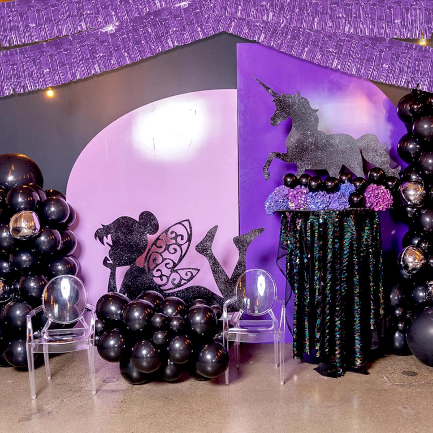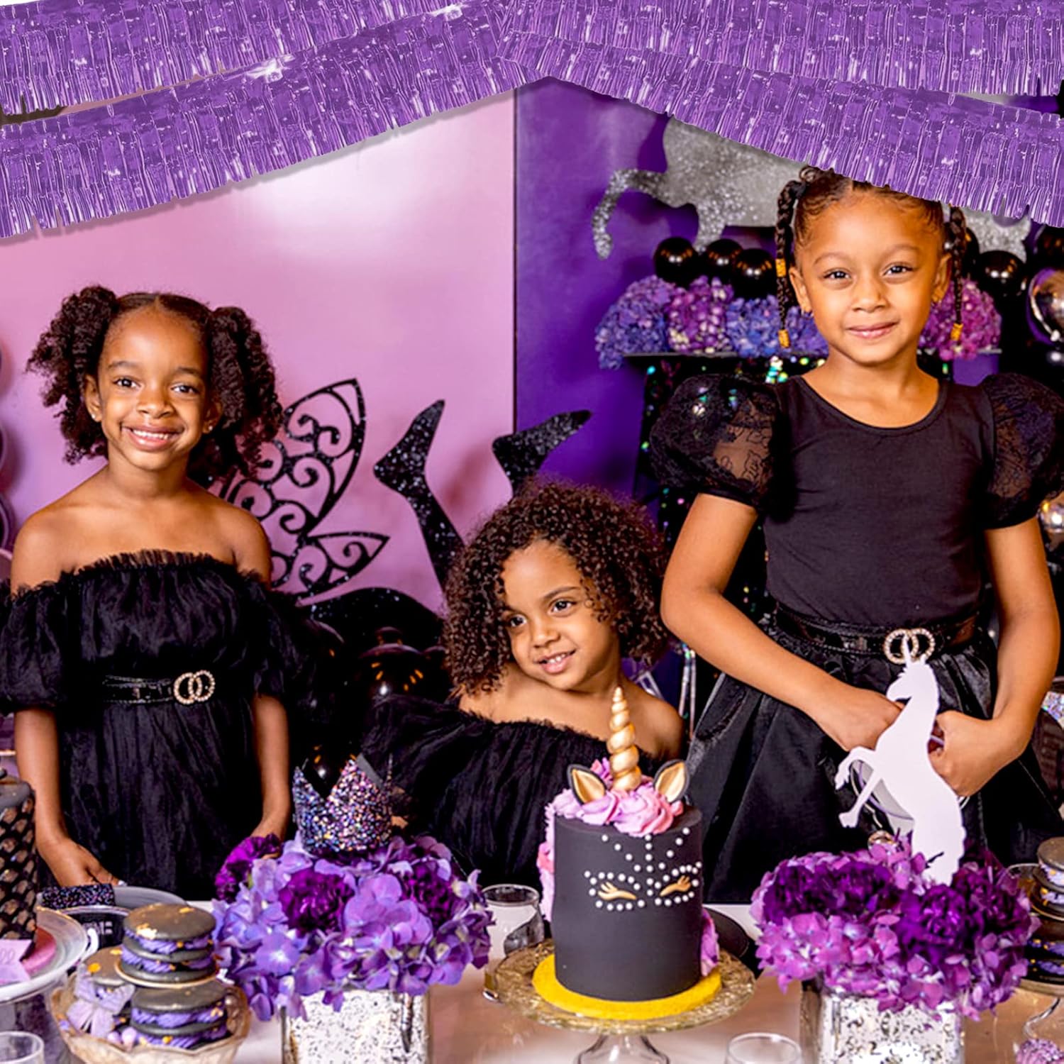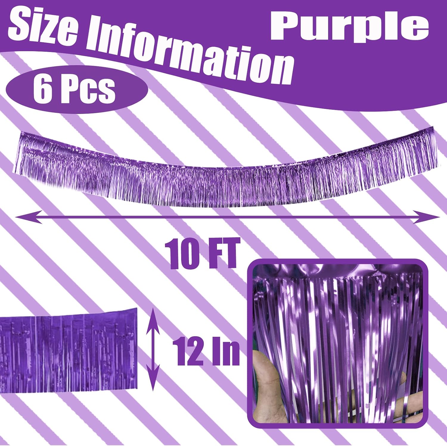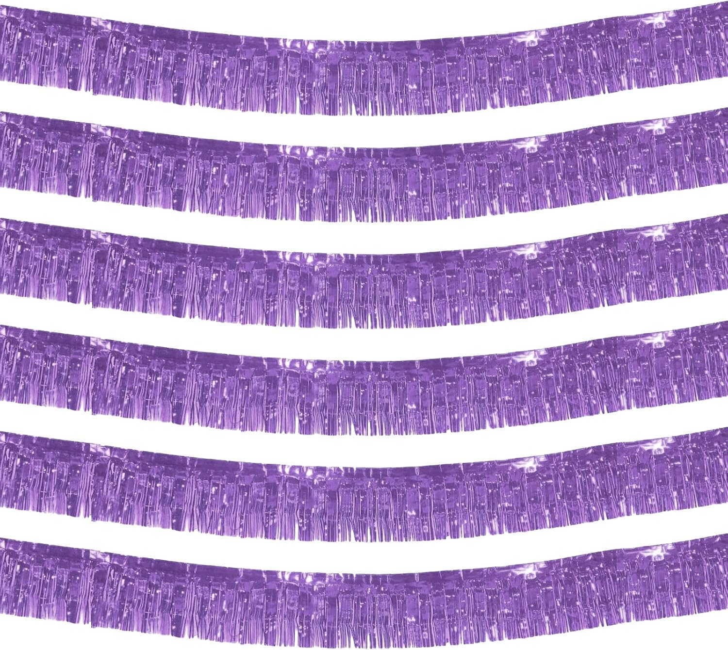 6 Pack 10 Feet Foil Fringe Garland Metallic Tinsel Streamers Banner Wall Hanging Backdrop Banner for Parade Floats, Thanksgiving, Christmas, Birthday, Halloween Party Decorations(Light Purple)