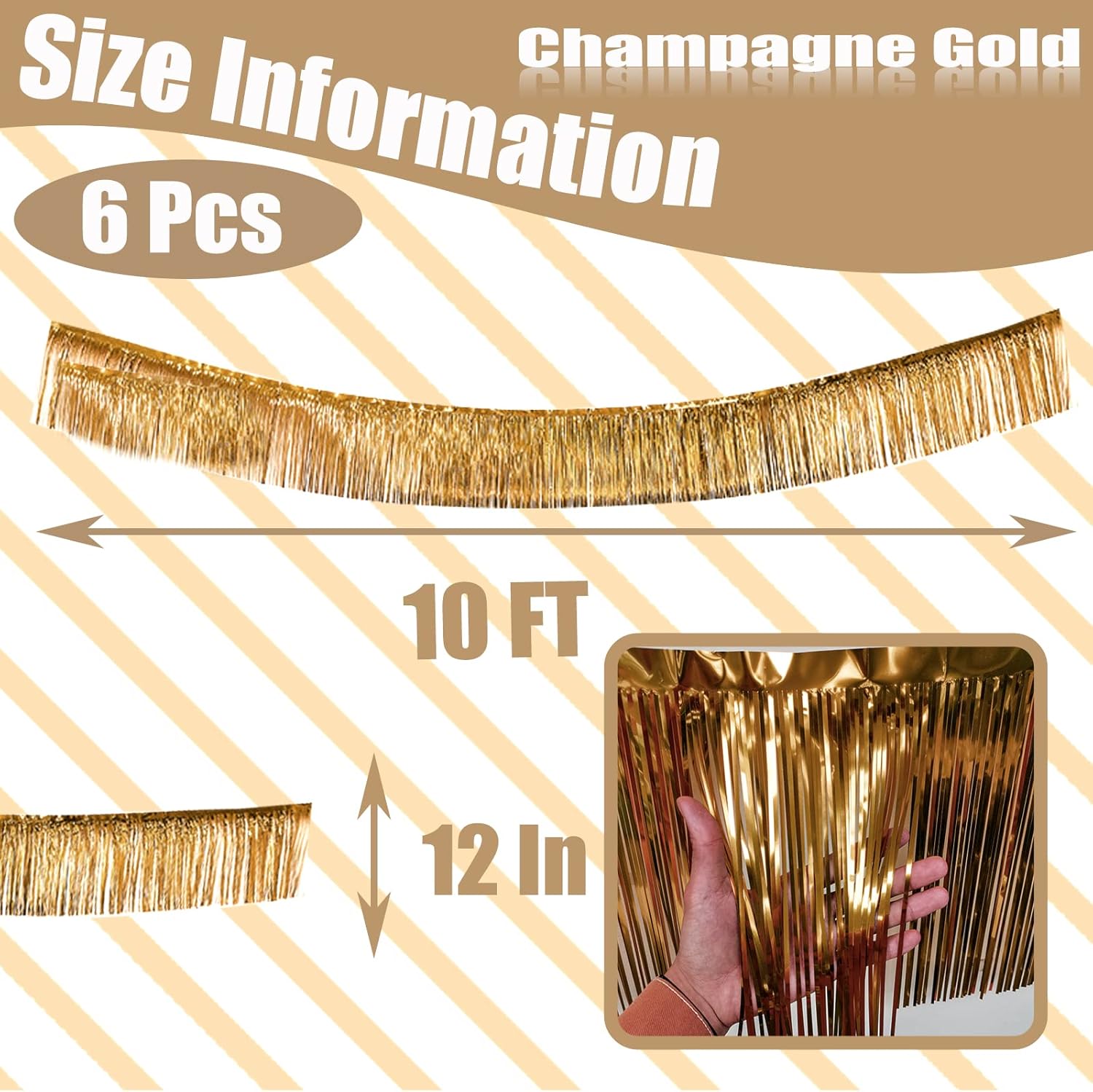 - 【Package and Size】6pcs/set metallic fringe garland / shiny tassel banner, enough quantity for your party decoration, save money. Each pack of 3 m/ 10 feet in length and 30 cm/ 12 inch in width.