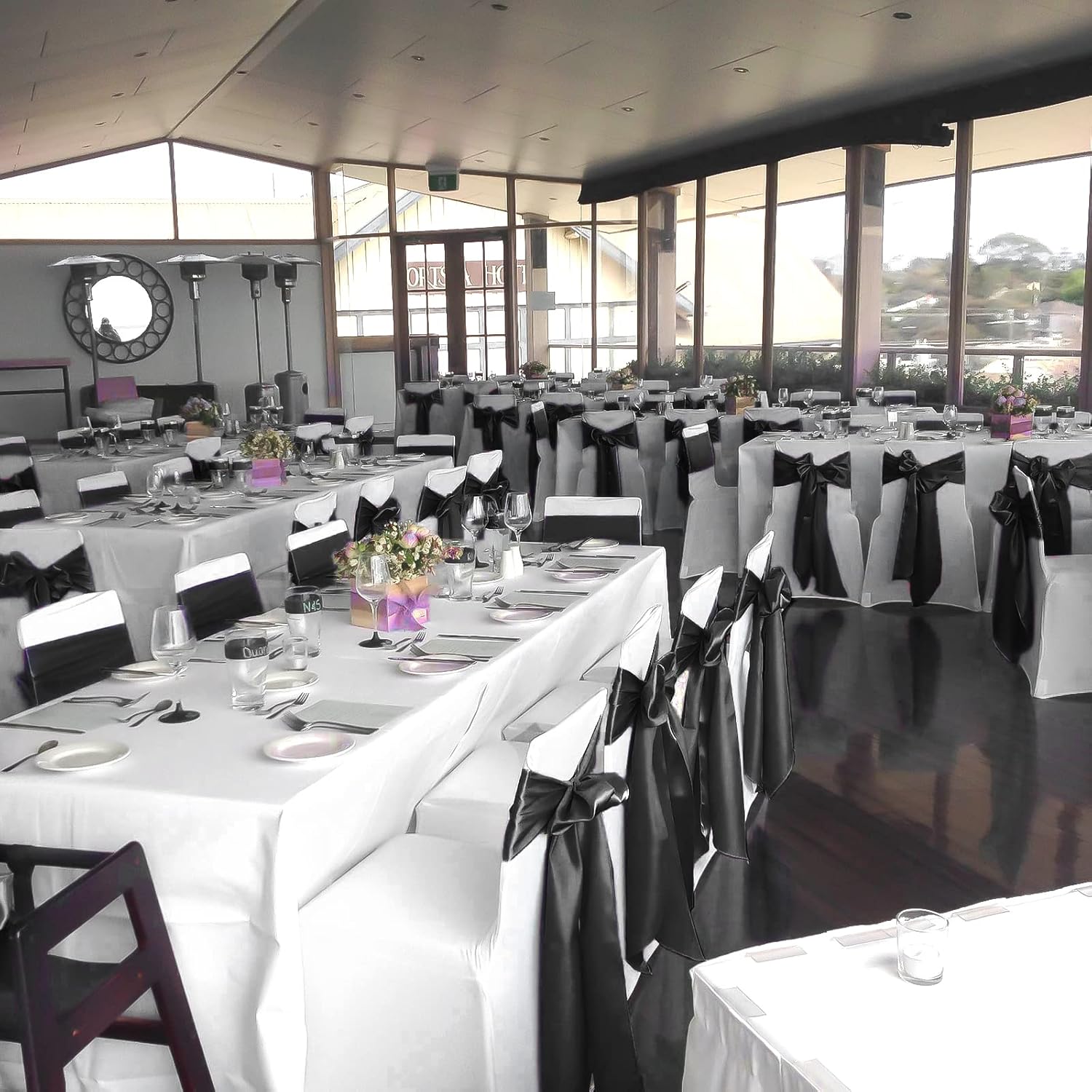 fani 60 PCS Black Satin Chair Sashes Bows Universal Chair Cover for Wedding Reception Restaurant Event Decoration Banquet,Party,Hotel Event Decorations (7 x 108 inch)