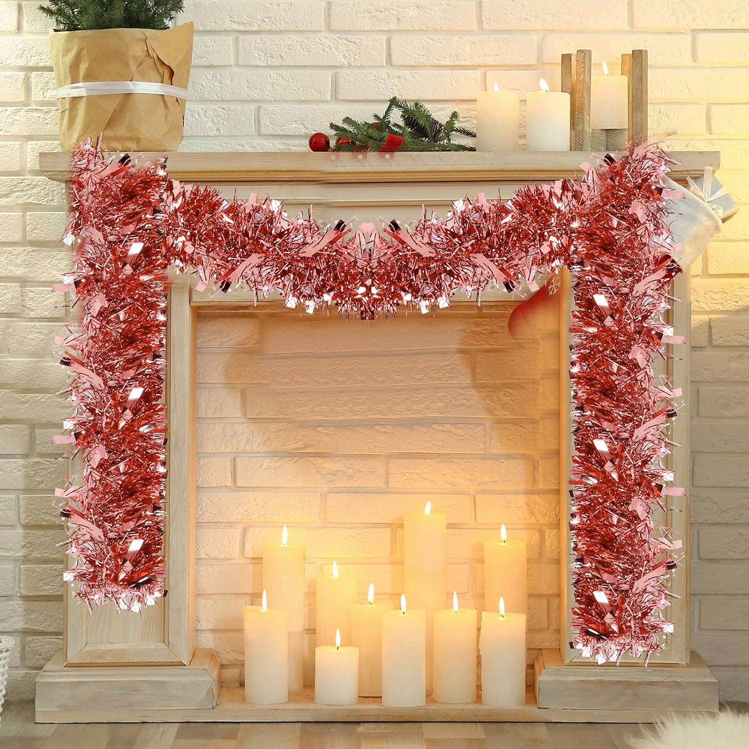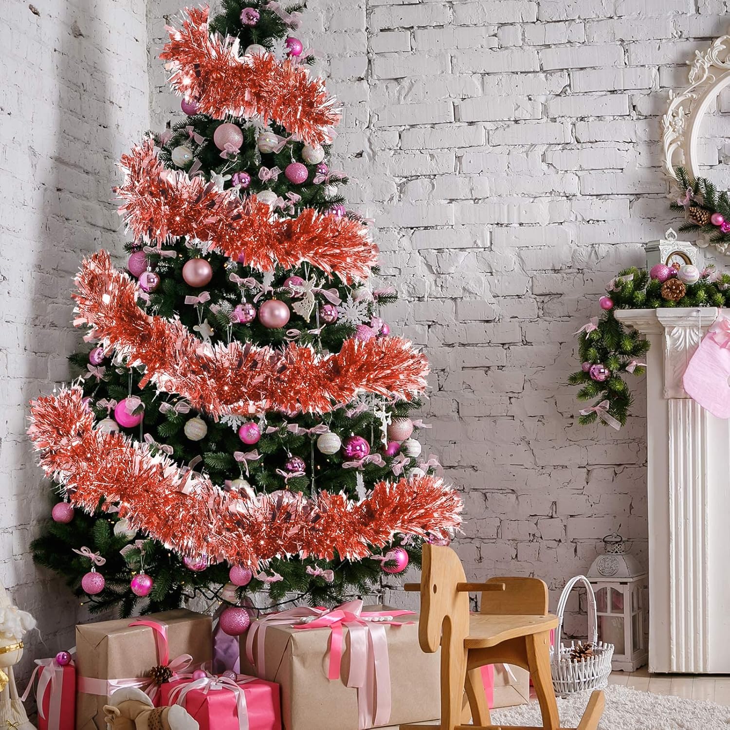 72 Feet Christmas Tinsel Garland Shiny Metallic Tinsel Twist Garland Streamers Ornaments Long Glitter Christmas Tree Hanging Decorations for Party Holiday Wedding Birthday Tree Wall Rail (Rose Gold)