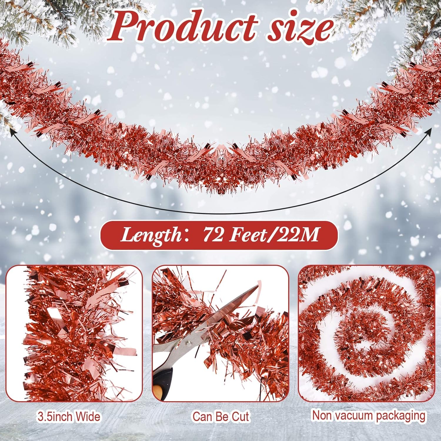 - Package Contents: the package includes 72 feet long and 3.54 inches wide tinsel garland, enough for you to use; Holiday garland looks beautiful, can be applied to decorate indoor and outdoor walls, stairs, fireplaces or doors