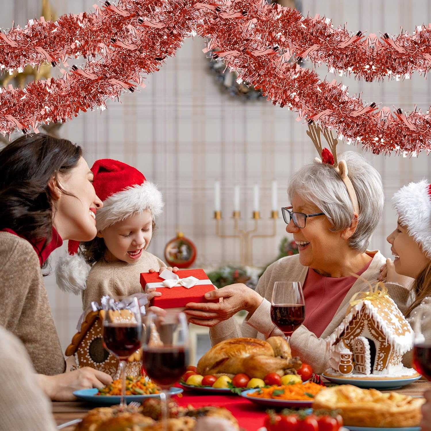 - Quality Materials: metallic garland is mainly made of foil, serviceable and unbreakable, shiny and no special smell, you can hang directly or twist into various shapes at will; Glitter garlands will bring more charm to your home; The enough length and width help to cover the Christmas tree, nice to paired with lights (note that lights are not included in the package), adding more festive and cheerful atmosphere to your holiday