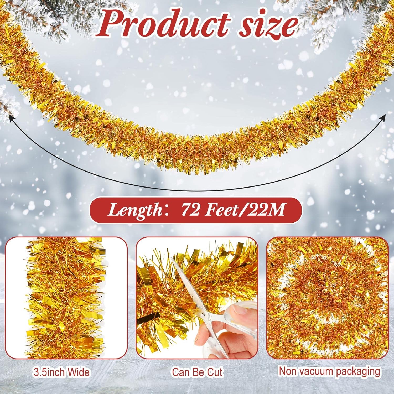 - Package Contents: the package includes 72 feet long and 3.54 inches wide tinsel garland, enough for you to use; Holiday garland looks beautiful, can be applied to decorate indoor and outdoor walls, stairs, fireplaces or doors