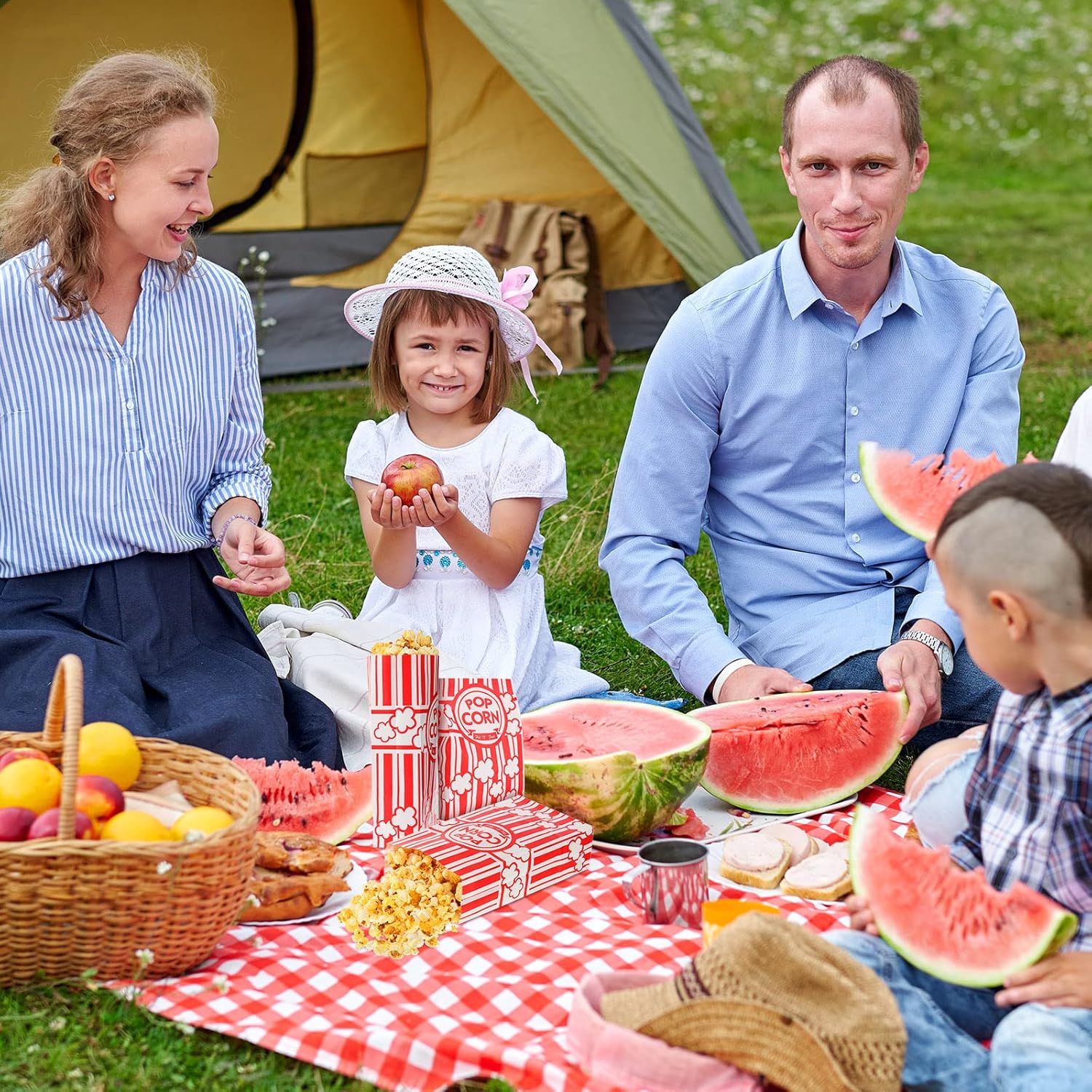 - Vintage and Resonant Appearances: the individual popcorn containers adopt classic red and white striped patterns and delicious popcorn patterns, which can arouse your childhood memories at first sight, creating a vintage and nostalgic atmosphere