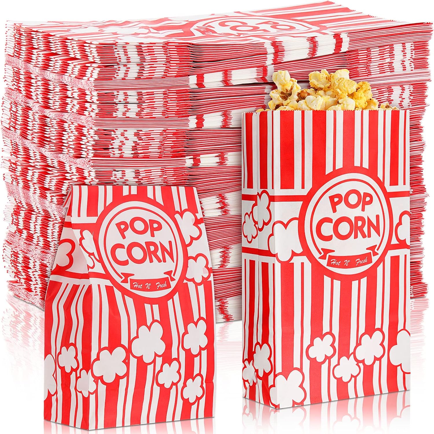 - Thoughtful Wide Mouth Design: designed with a rectangular mouth, the popcorn paper bags are large enough for you to reach for the popcorn; What's more, you can easily fold the mouths of the bags to seal the popcorn inside, to avoid spilling out, also, you can set the bags on the table instead of keeping holding them in the hand