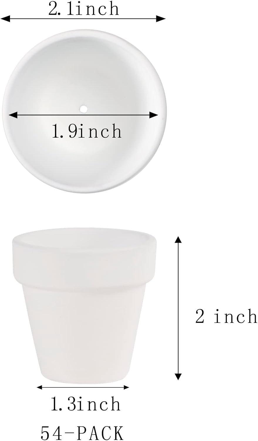 - Mini and Lovely: The tiny white clay pots for plants, 2" in height, 2.1" in outer diameter, are designed for holding small succulent, cactus and herbs. There are 54 pcs white pots in the package, plants and soil are not included.