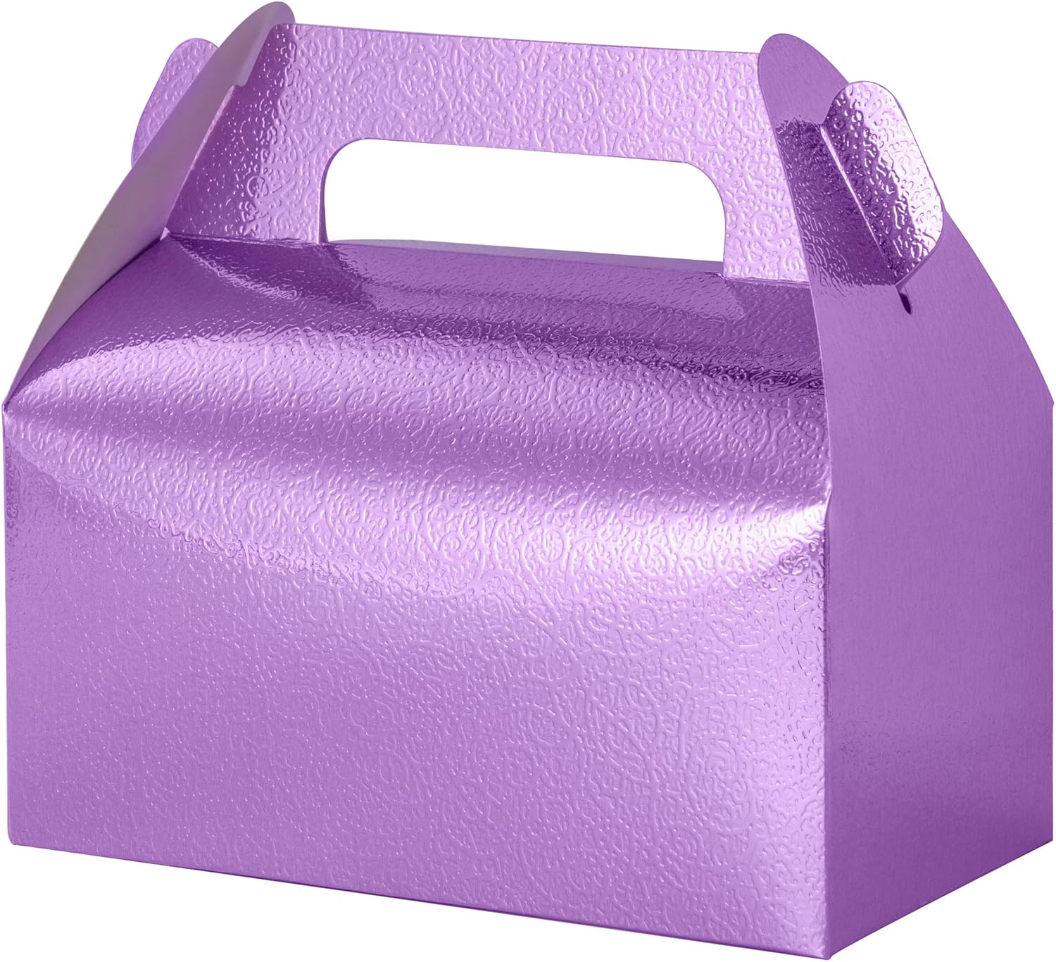 UnicoPak 30 Pack Glossy Purple Gable Treat Boxes, Party Favor Boxes, Gift Boxes for Kids, for Snacks, Candy, Toys, Birthday Party, Wedding, Halloween, Christmas – 6.5x3.5x4 Inches
