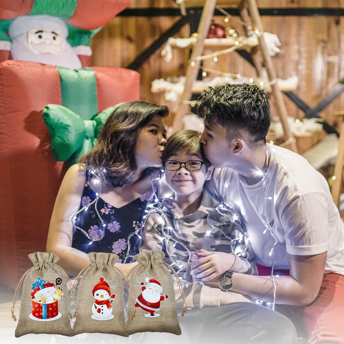 - Super Valuable Assorted Pack of 24: You are getting total 24pcs Christmas jute burlap bags in 6 different designs of 4pcs/pattern: santa, penguins, snowman, gift box, reindeer, the biscuit man. Always find the best but cute one to your beloved family members and friends.