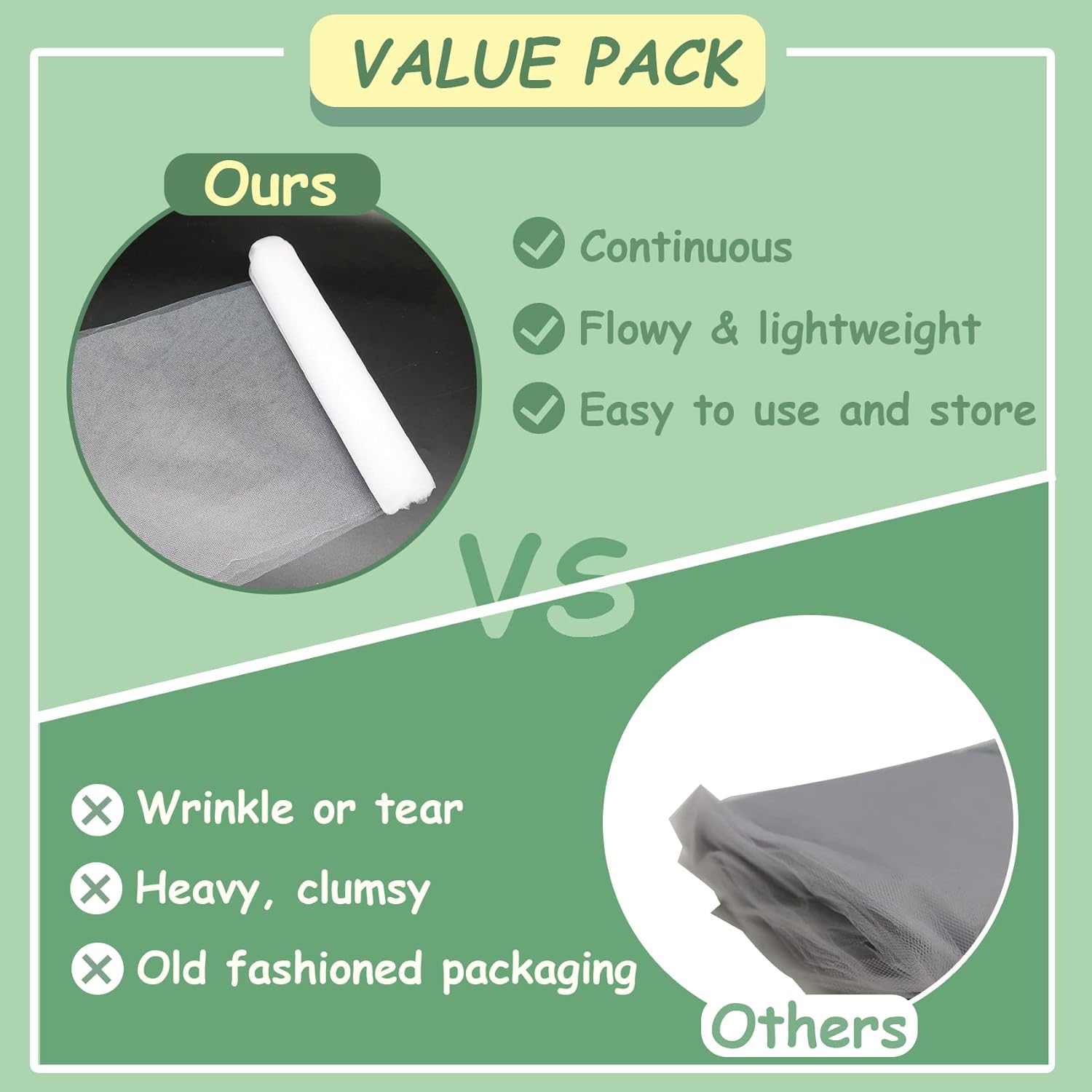 - CONTINUOUS 54 INCH X 10 YARDS(30 FT): Large area tulle fabric. It is flowy and more durable than others, without wrinkle or tear.