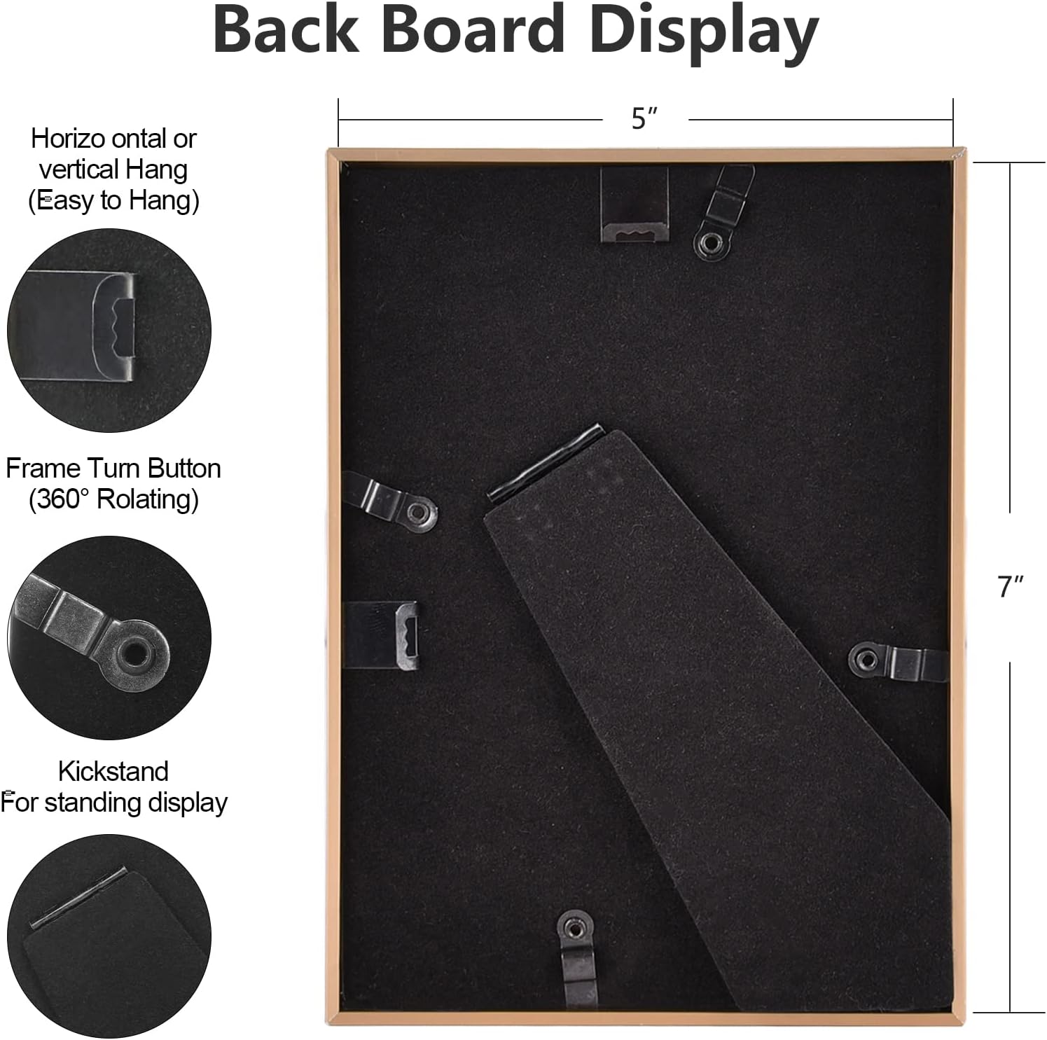 - ăDimensions and functionsă: This picture frame can hold 5x7 inchs photos, Display of Tabletop and Wall Hanging