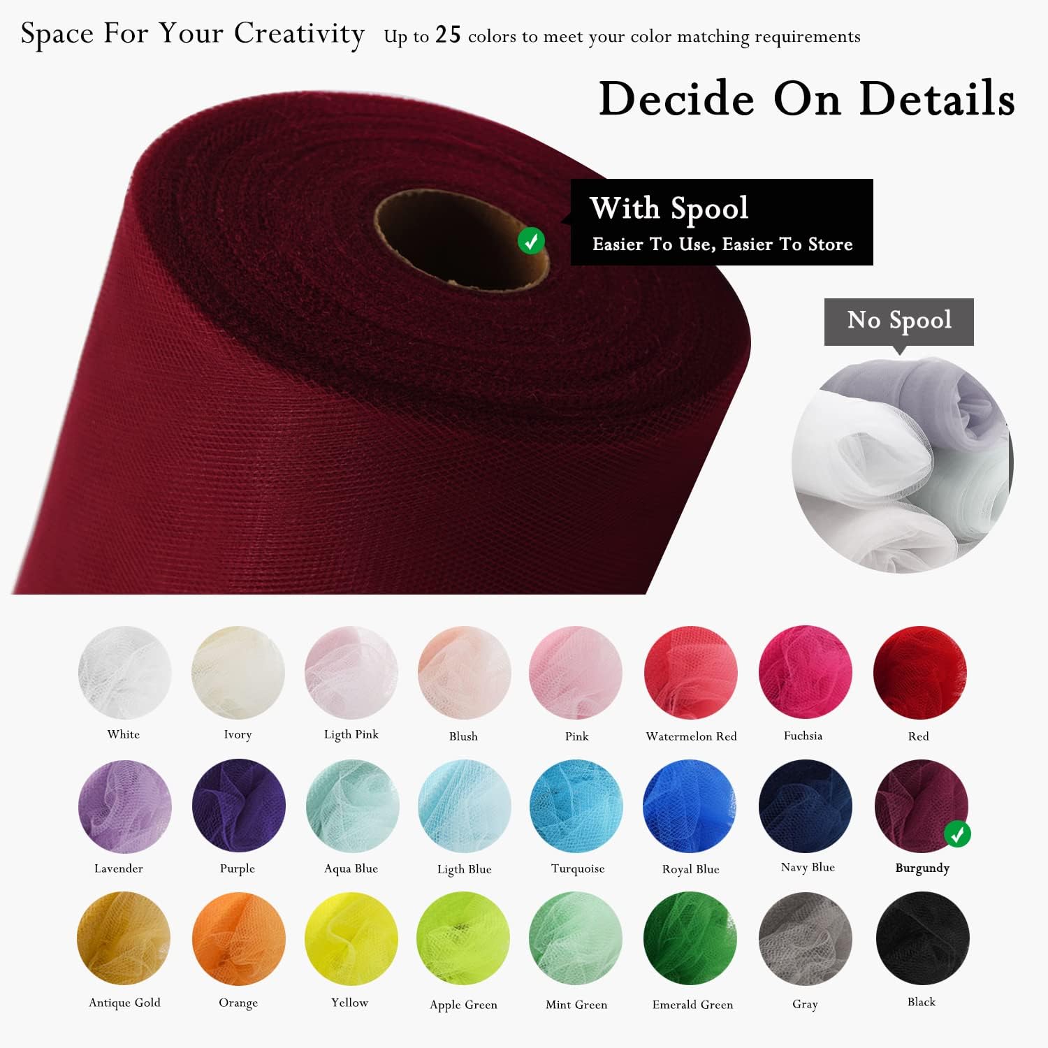 Burgundy Tulle Fabric Rolls 54 Inch by 40 Yards Tulle Bolt Spool for Wedding Decorations DIY Tutu Baby Shower Table Skirt Ceiling Decor Birthday Party Craft Supplies