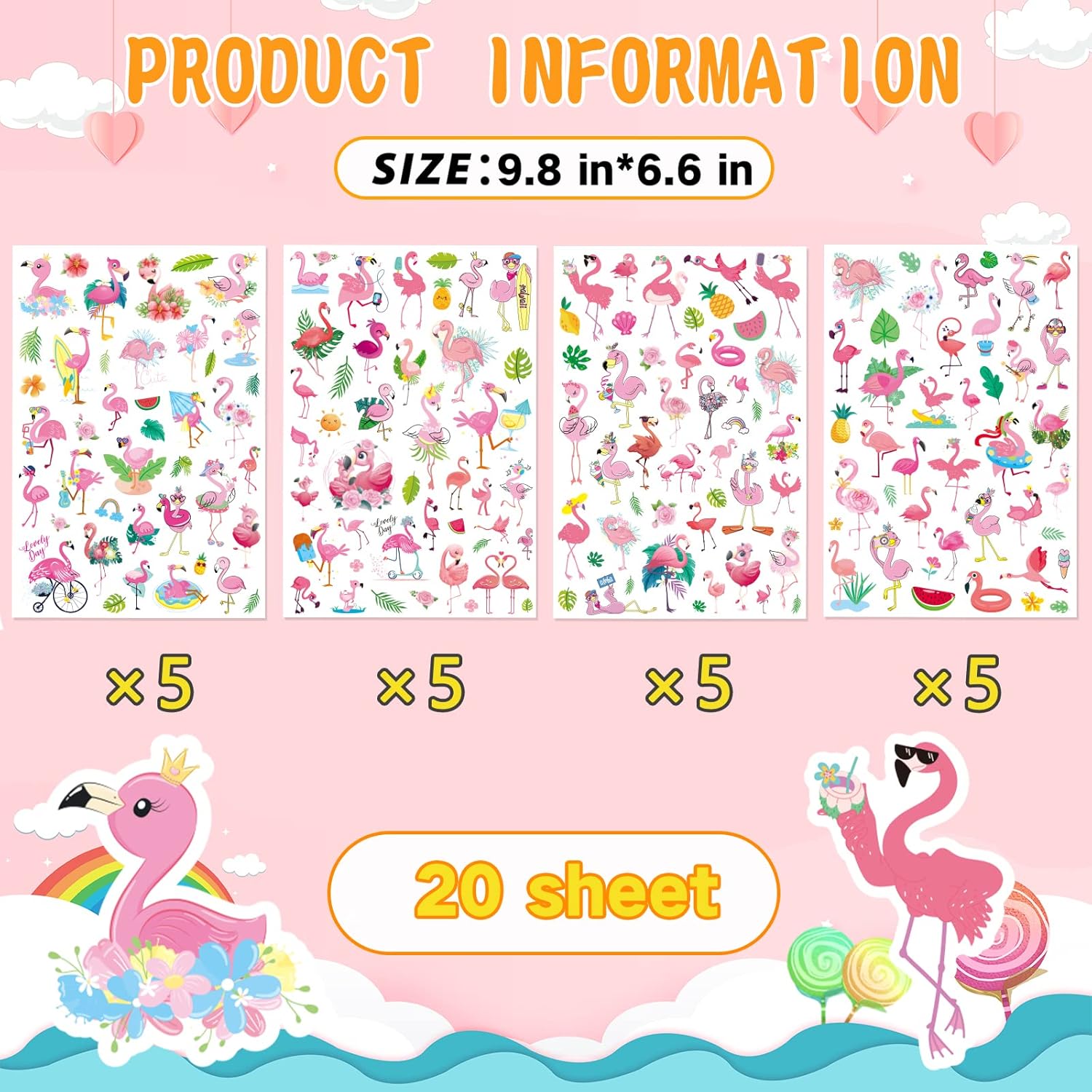 Flamingo Tropical Bird Stickers 840 Count Tropical Pink Bird Animal Stickers for Jungle Safari Animal Birthday Invitations Envelopes Summer Party Goodie Gifts Bags Decor Class Rewards