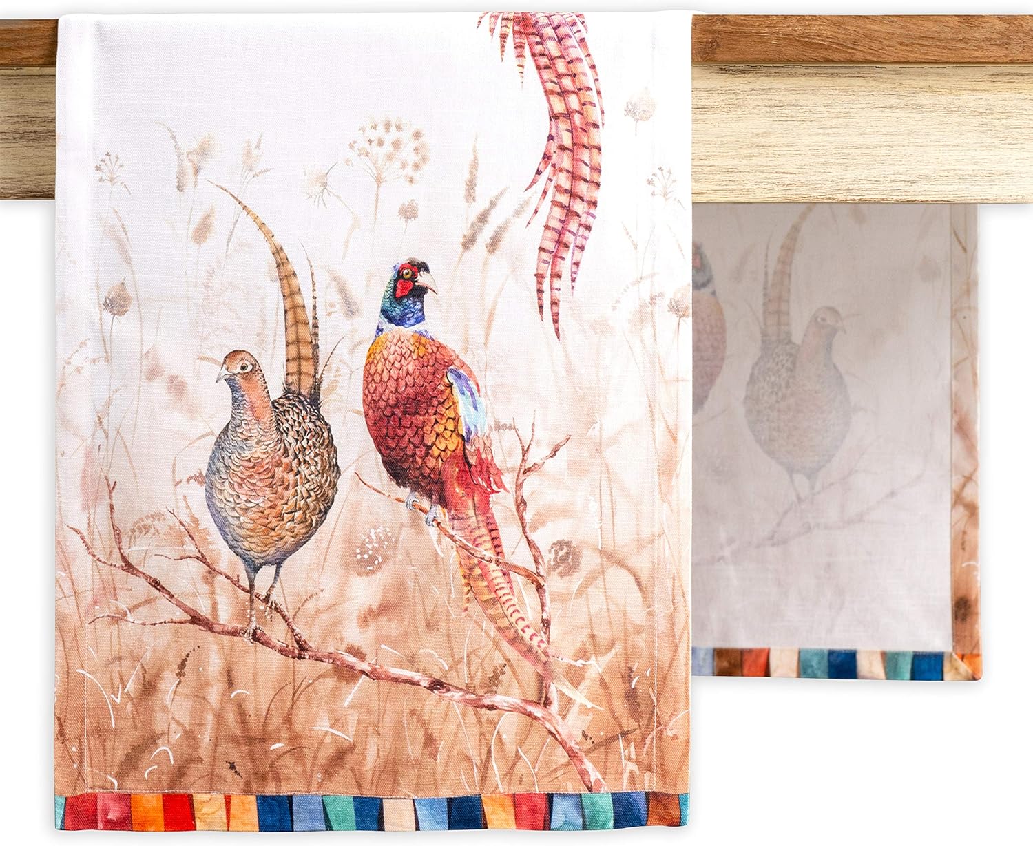 Maison d' Hermine Table Runner 100% Cotton Single Layer Table Runners 90 inches Long Decorative for Home Kitchen Dining Party Baby Shower Wedding Bridal Shower (Faisan D'Automne, 14.50" x 90")