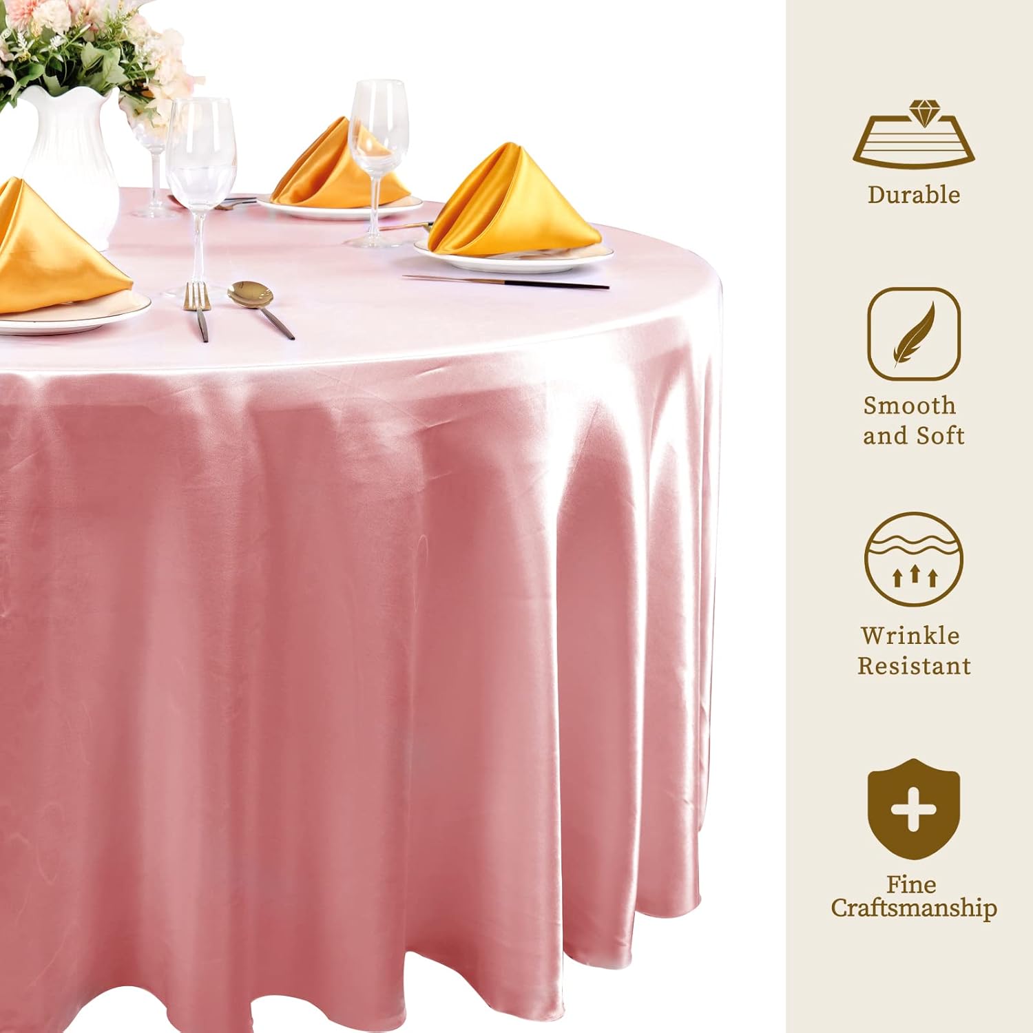 - 💗【Seamless One-piece Design】The bright silk round tablecloth is made of satin fabric, soft, smooth, durable, not easy to fade and wrinkle, with good brightness and drape feeling, it can be not easy to deform, which can meet your needs for a long time and protect your table. The exquisite design and elegant color make the table cover an ideal decoration for your dinner party.