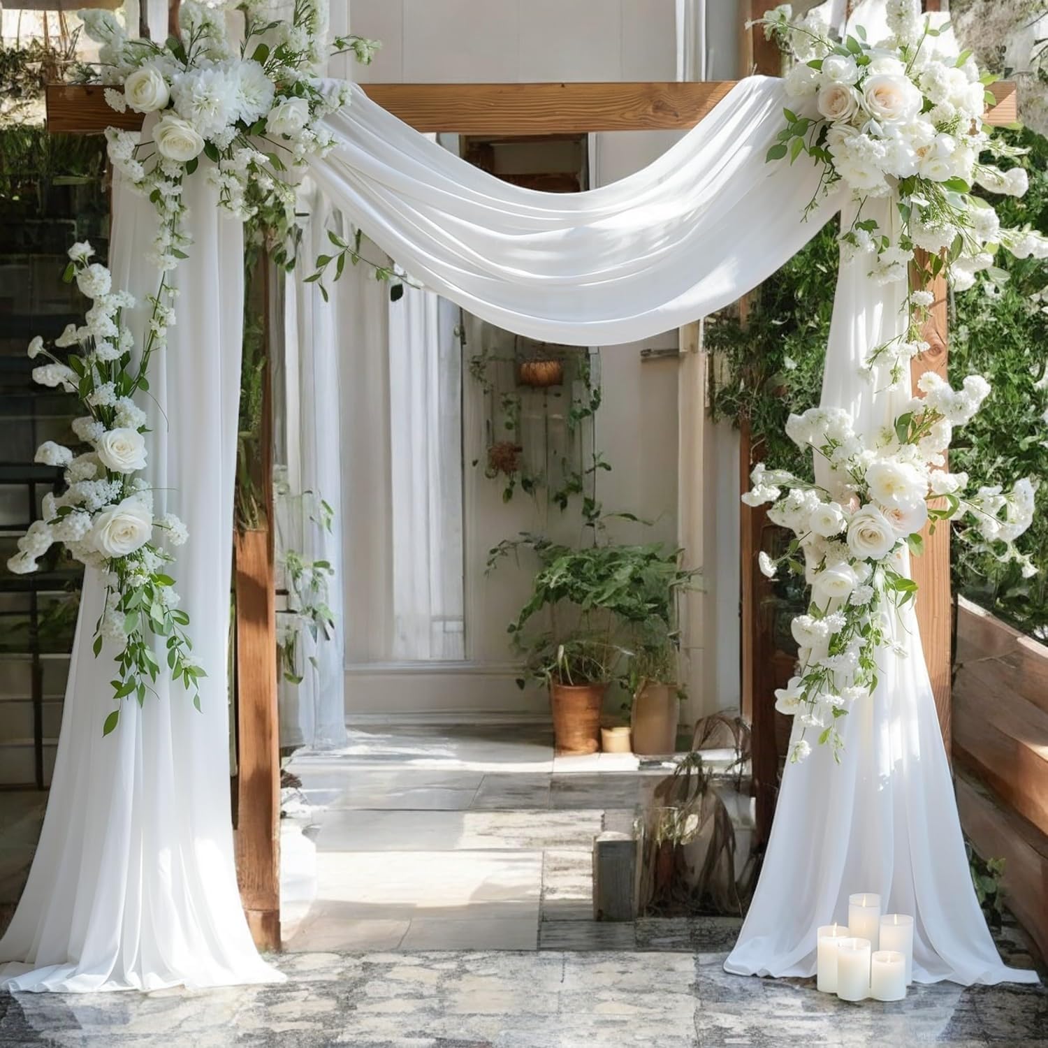 - MULTI-SCENES USES : The drapes made the entire wedding come together, perfect for your indoor outdoor baby shower parties, bridal shower, baby showers, holiday parties,wedding, family gatherings, dessert tables, candy tables.White wedding arch drape fabric can also be used on a canopy, chuppah, arbor or altar.This wedding arches for ceremony is perfect for creating beautiful pleats or letting it float off the floor, adding a very delicate, soft, beautiful touch to your stage at any event.