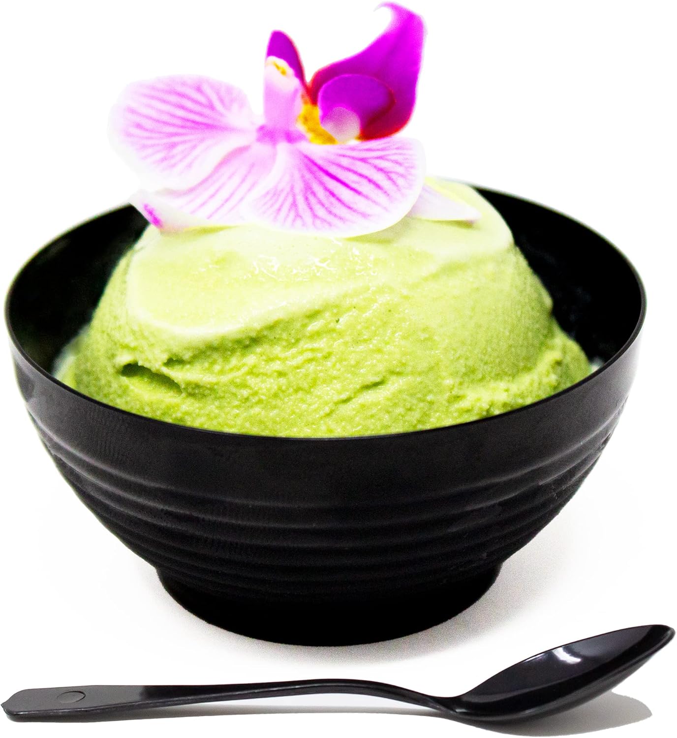 50 Pack 3 oz. Asian-Style Black Mini Plastic Bowl With Spoons For Appetizer Bowls and Disposable Dessert Bowls Professional-Grade Recyclable Disposable Mini Dessert Cup for Appetizers CMJJ