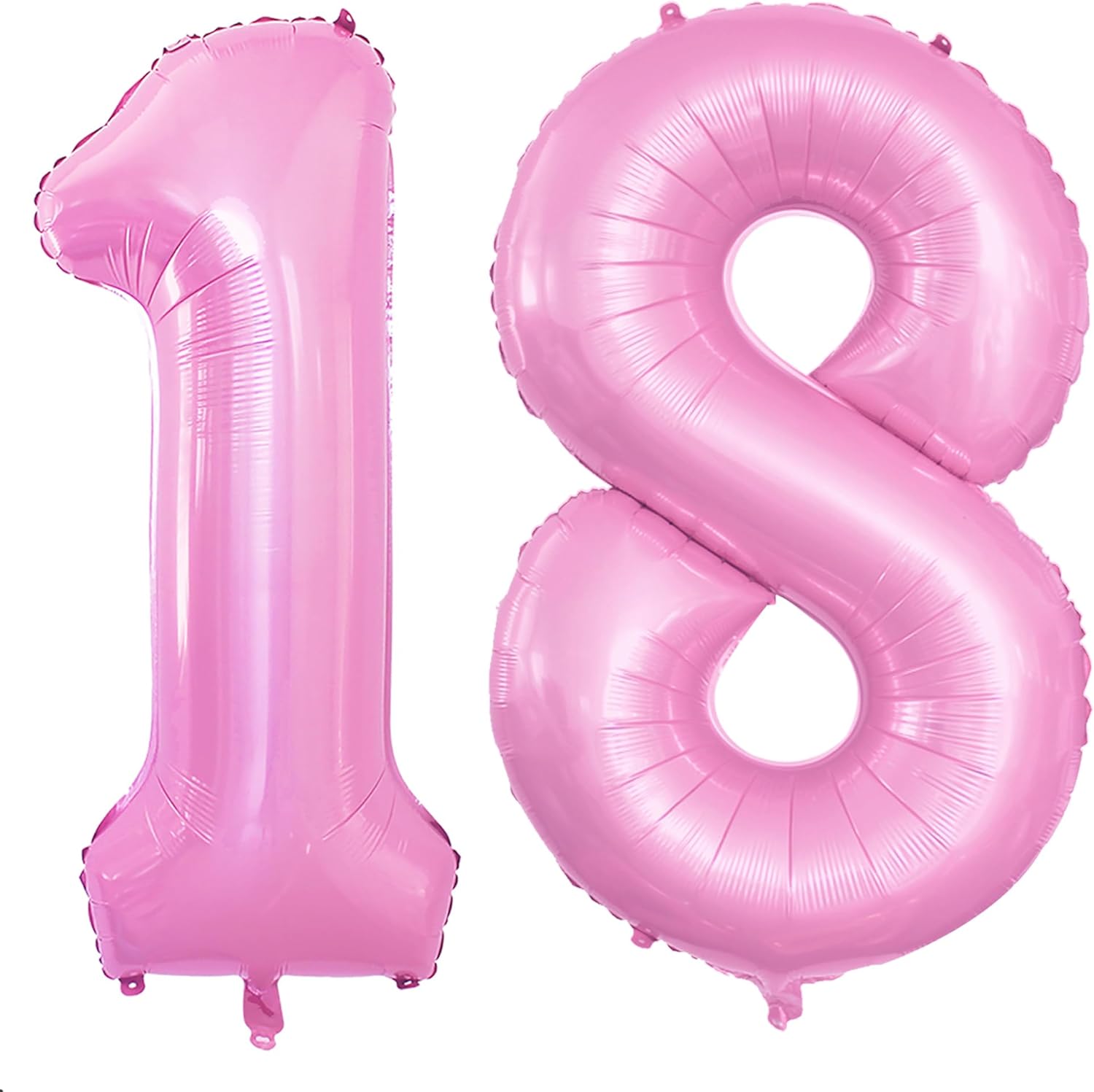 GOER Number 18 Balloons for 18th Birthday Sweet 18 Party Decorations,42 Inch Jumbo Foil Helium 81 Balloons for 81st Birthday Party Decoration (Light Pink)