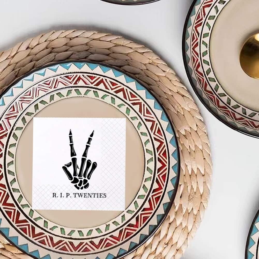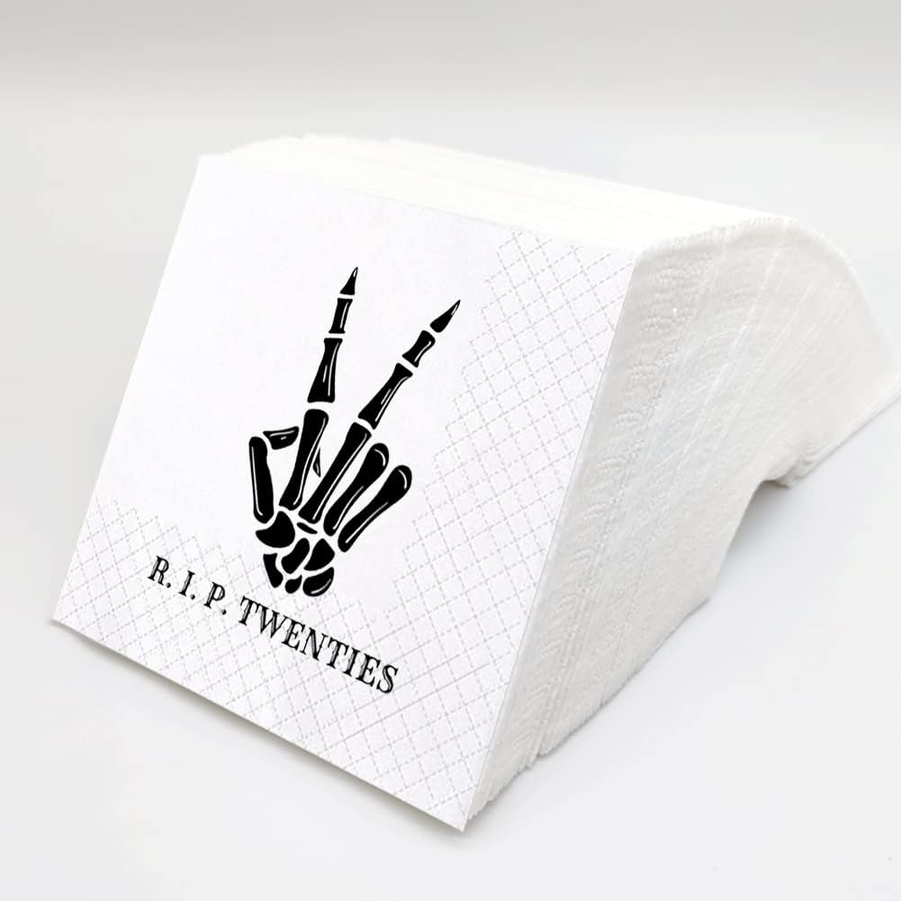 SharkBliss RIP Twenties Cocktail Napkins, 100 Pack RIP Twenties Death to My 20s Dirty 30 Birthday Paper Cocktail Beverage Napkins in Bulk for 30th Birthday | 2-Ply, 5x5" (RIP Twenties Napkins)