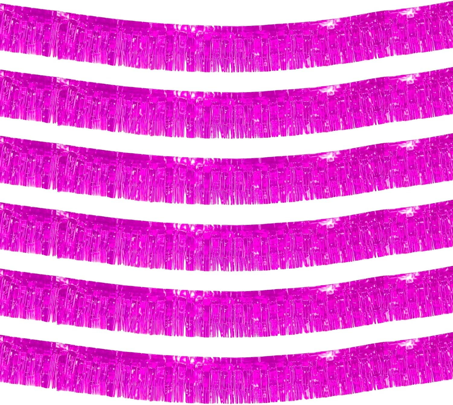 6 Pack 10 Feet Pink Metallic Foil Fringe Garland Rectangular Banner for Parade Floats, Thanksgiving, Christmas, Birthday, Halloween Party Decorations