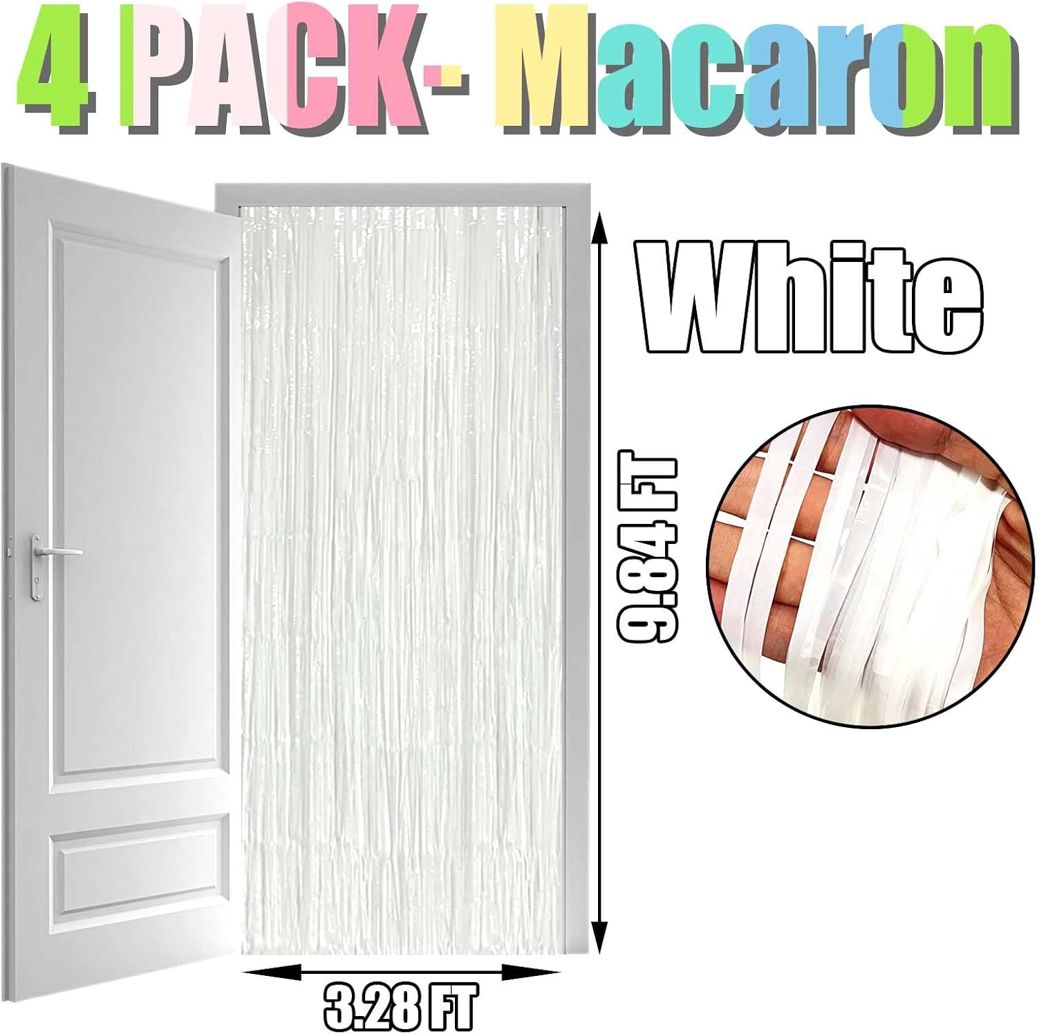 4 Pack White Foil Fringe Curtain Backdrop, 3.3Ft x 9.8Ft Metallic Tinsel Streamers Curtains for Photo Booth, Wedding, Thanksgiving, Birthday, Christmas Party Decoration, One Size