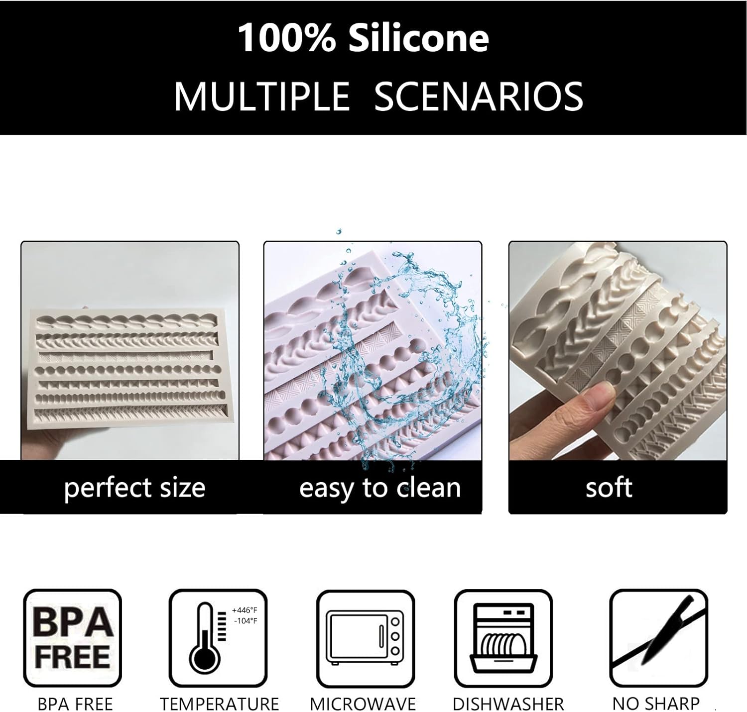 - [WIDE APPLICATION]: These clay border molds are perfect for cake decoration, cupcake toppers, baking, etc. Lovely for making candy, chocolate, etc. Excellent for sugar craft, gum paste, clay, resin, etc