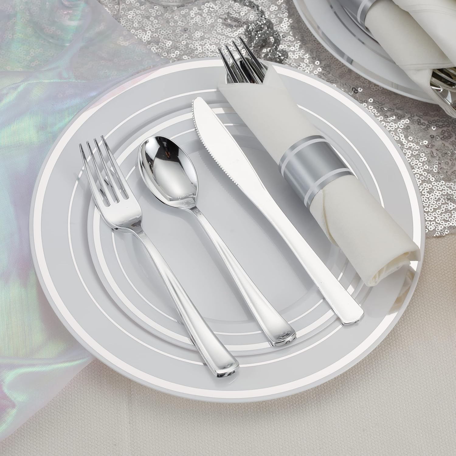 - Elegant for Any Event: With a sleek metallic silver finish, our pre rolled napkin cutlery set adds elegance to any occasion, including birthdays, baby showers, and outdoor parties.