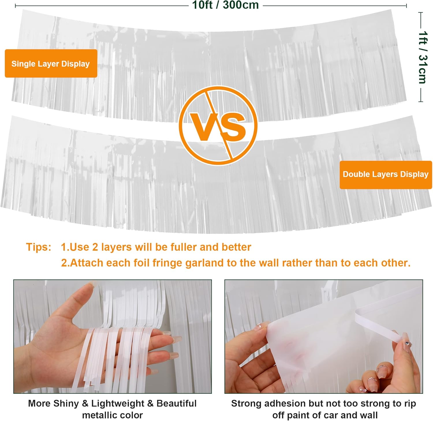 - 【PACKAGE INCLUDES】Comes with 4 packs of WHITE foil, 10*1 ft/3*0.3m (L*W ), You can cut it into any size to meet your decoration needs. If you want parade float decoration to be colorful, fuller, thicker and looks better, it is better to use more than 2 packs of fringe float overlapping together. And tape each foil fringe garland on the car/wall, not on top of each other. With these festive metallic streamers, you can take your parade float decorations to the next level.
