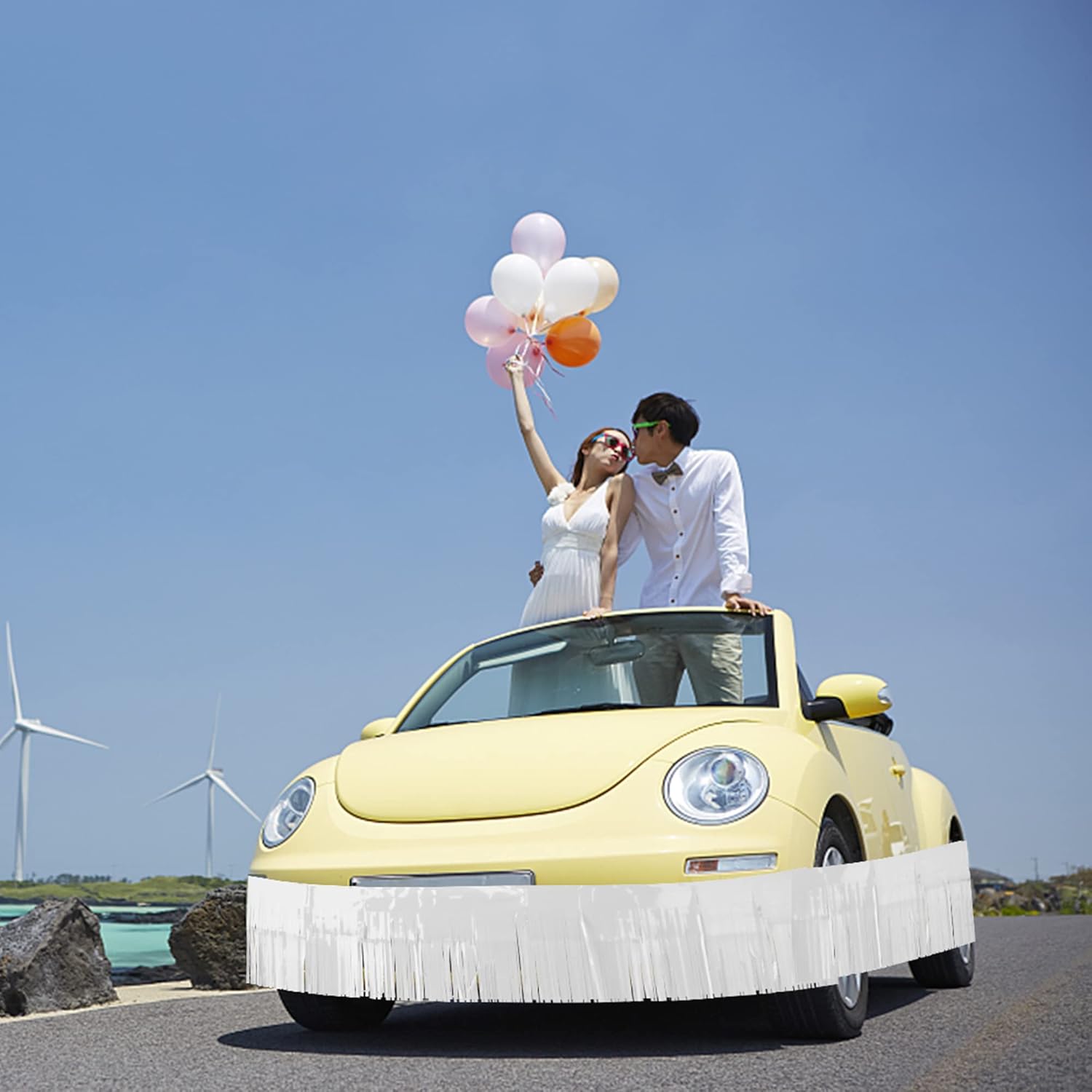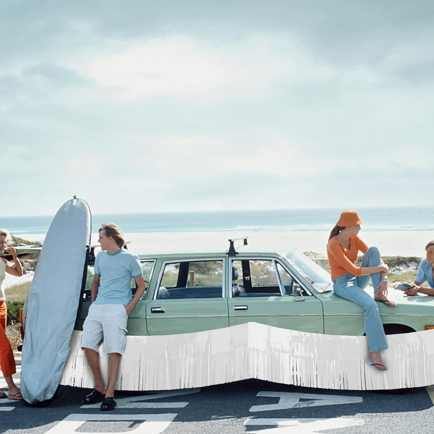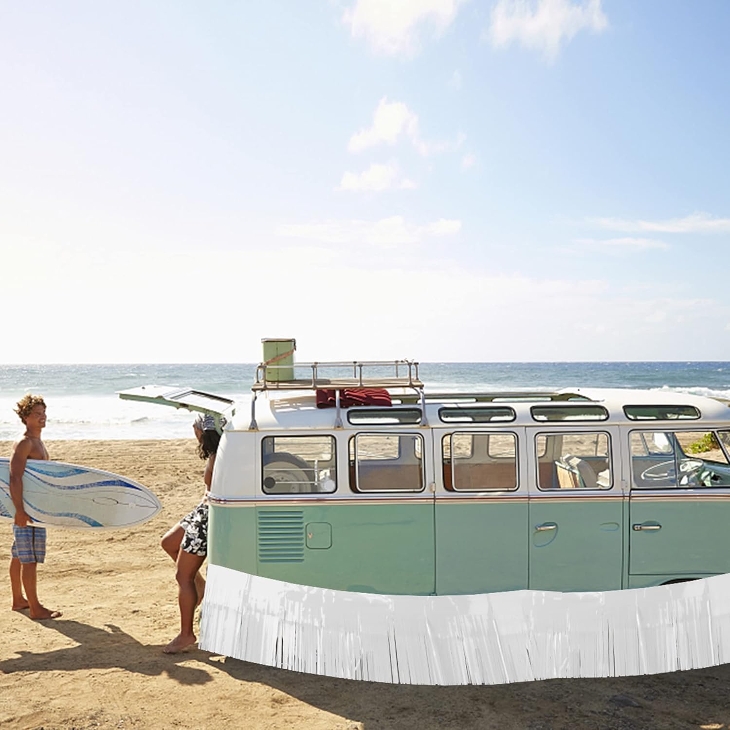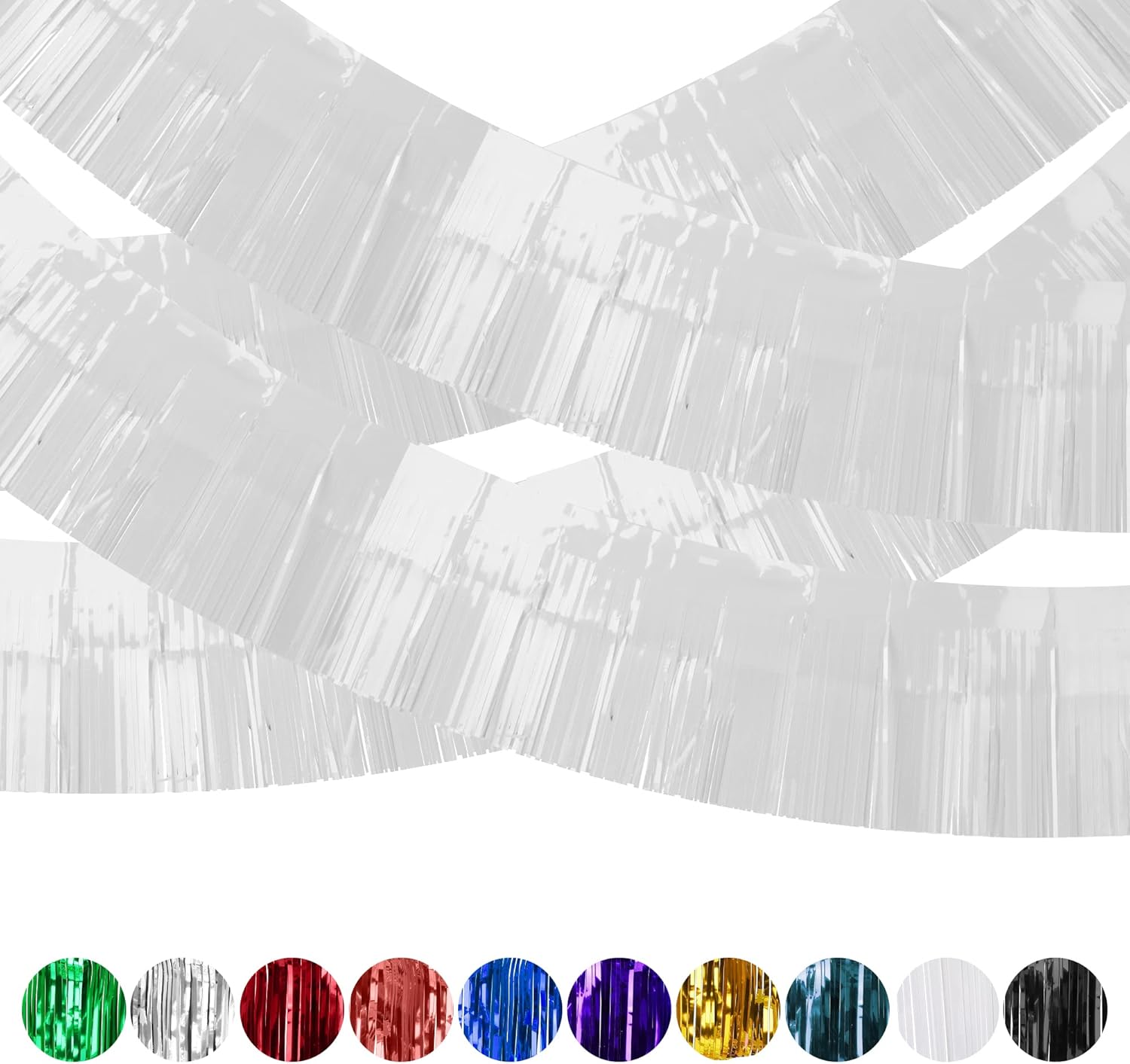 4 Pack Iridescent Float Fringe Curtains, Metallic Foil Fringe Garland Shiny Tassel Foil Parade Float Decorations for Trailer Car Graduation Homecoming Outdoor Indoor Party (White)