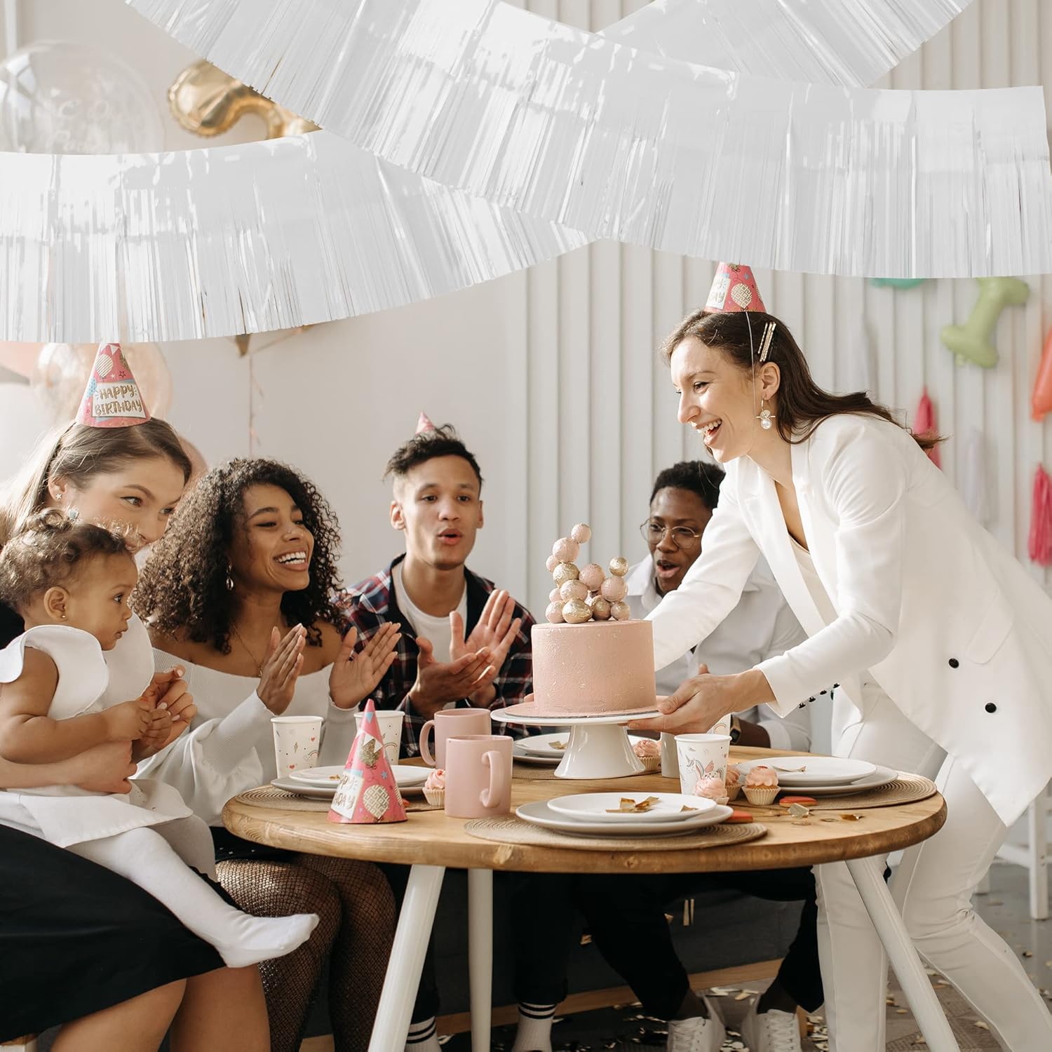- 【COLOR YOUR DECORATIONS】The metallic foil fringe garland serves as an awesome party decoration trim, fancy up a party. Hang it on the wall as an iridescent shiny backdrop for photos, your friends will be very happy to take pictures in front of the foil garland background. Hang some foil garland in the windows, attach them to the ceiling, decorate the dessert table as a table skirt or make an elegant entrance curtain for your guests. Your guests will be impressed with your DIY creative party!