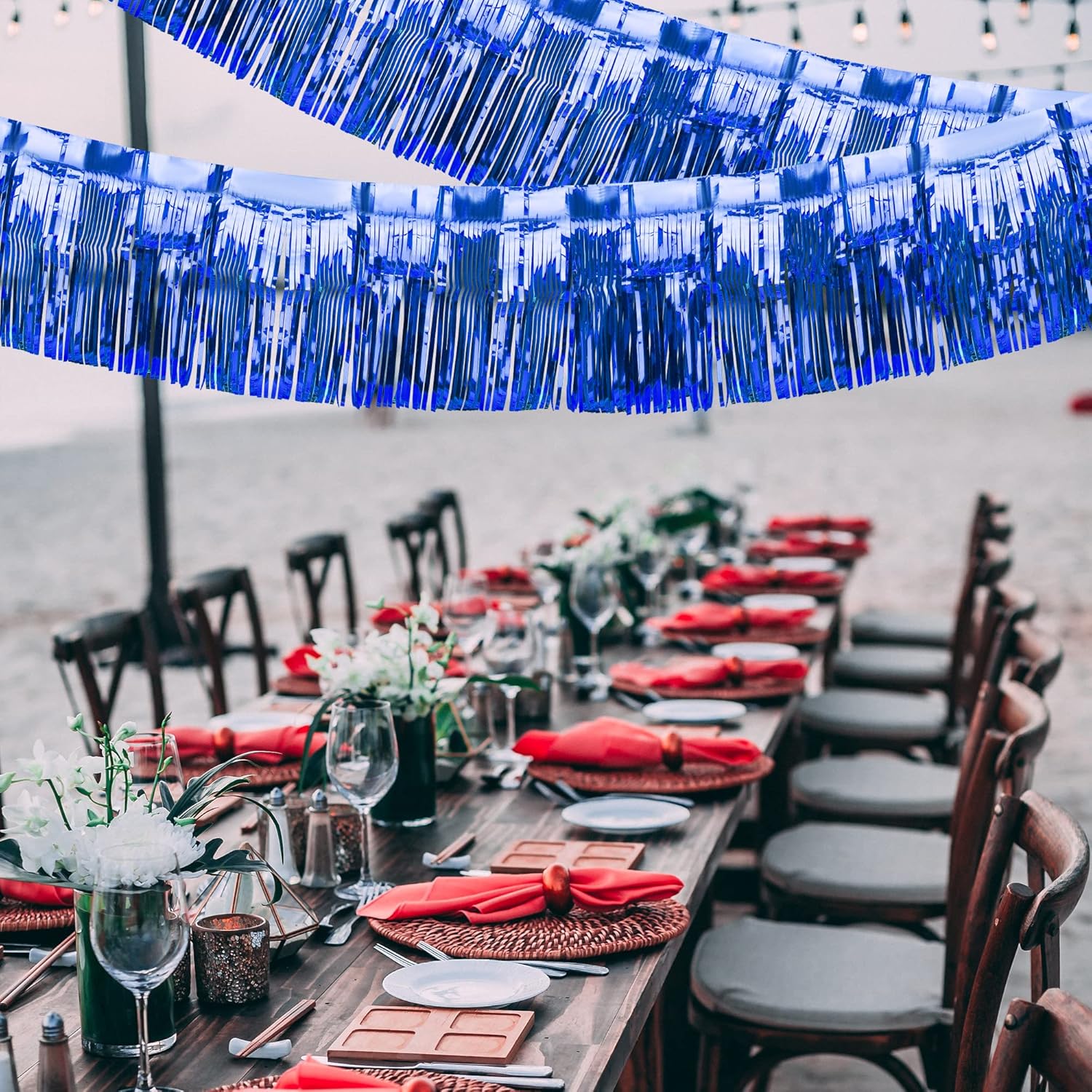 - 【COLOR YOUR PARTY DECORATIONS】The metallic foil fringe garland serves as an awesome party decoration trim, fancy up a party. Hang it on the wall as an iridescent backdrop for photos, your friends will be very happy to take pictures in front of the foil garland background. Hang some foil garland in the windows, attach them to the ceiling, decorate the dessert table as a table skirt or make an elegant entrance curtain for your guests. Your guests will be impressed with your DIY creative party!