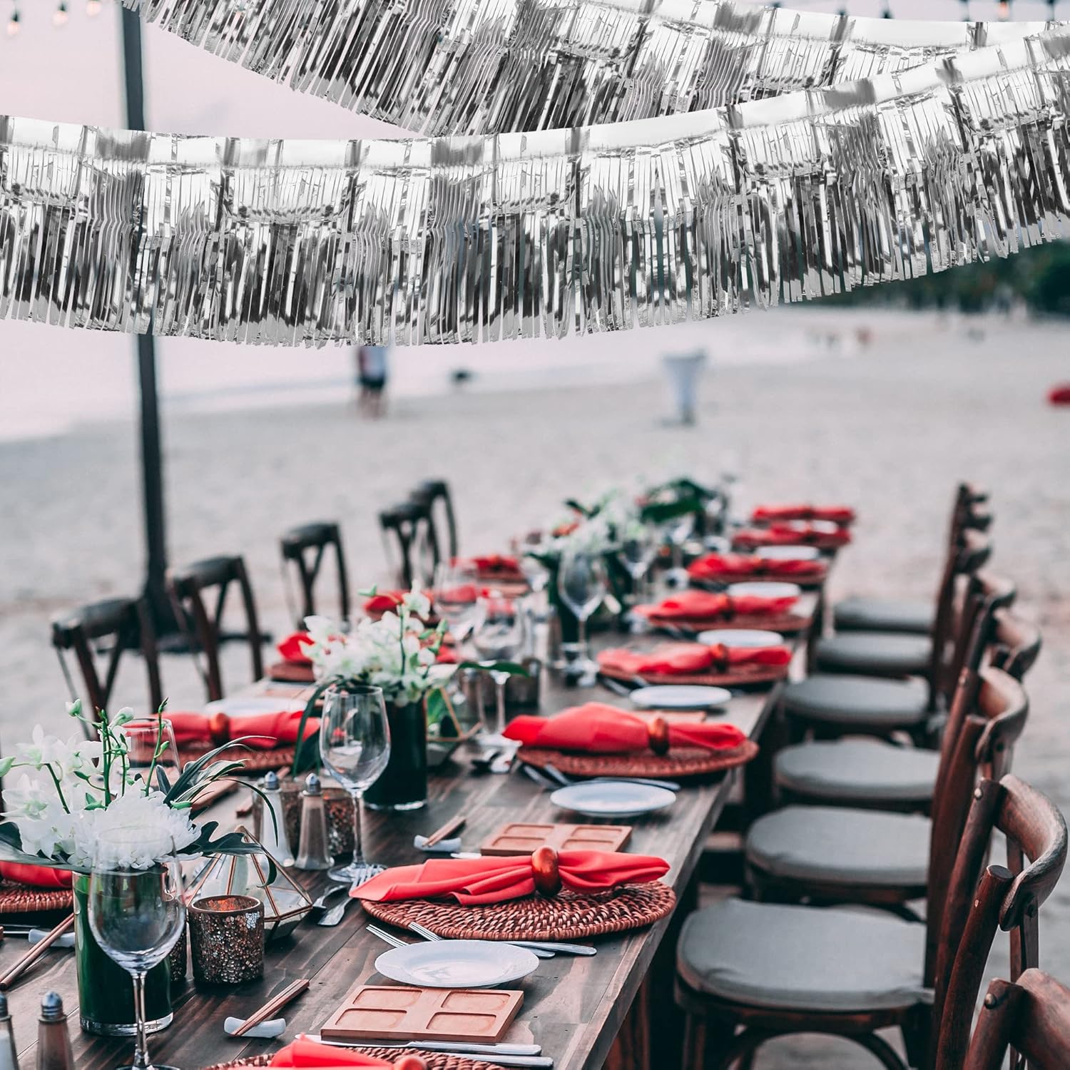 - 【COLOR YOUR PARTY DECORATIONS】The metallic foil fringe garland serves as an awesome party decoration trim, fancy up a party. Hang it on the wall as an iridescent backdrop for photos, your friends will be very happy to take pictures in front of the foil garland background. Hang some foil garland in the windows, attach them to the ceiling, decorate the dessert table as a table skirt or make an elegant entrance curtain for your guests. Your guests will be impressed with your DIY creative party!
