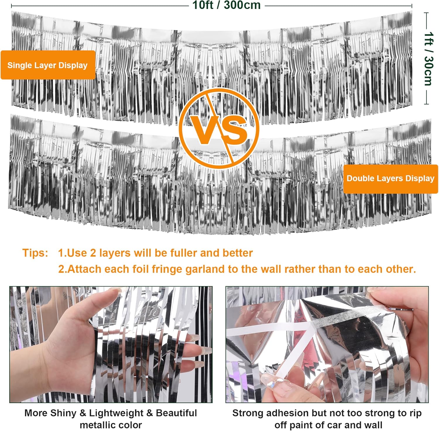 - 【PACKAGE INCLUDES】Comes with 4 packs of Silver foil, 10*1 ft/3*0.3m (L*W ), You can cut it into any size to meet your decoration needs. If you want parade float decoration to be colorful, fuller, thicker and looks better, it is better to use more than 2 packs of fringe float overlapping together. And tape each foil fringe garland on the car/wall, not on top of each other. With these festive metallic streamers, you can take your parade float decorations to the next level.