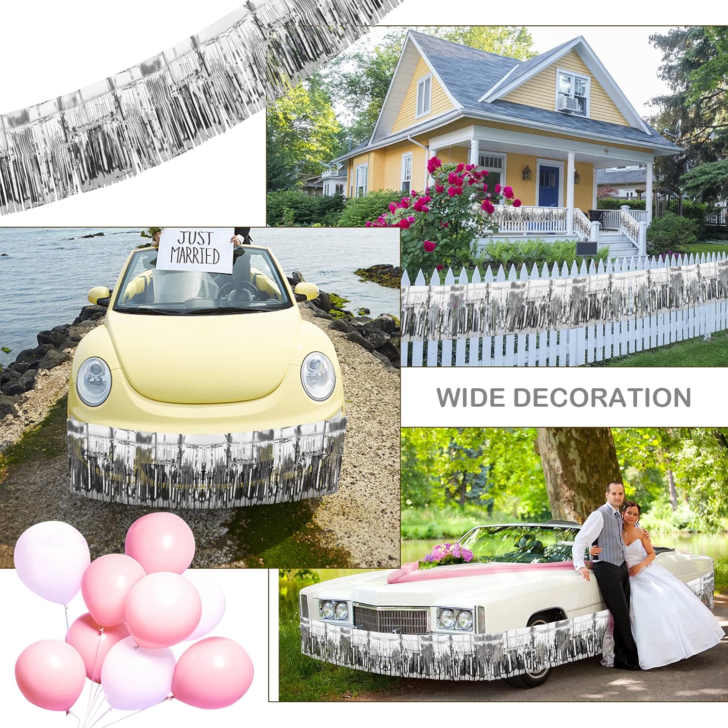 - 【WIDE DECORATION】These fringe floats are perfect for parade floats, decorative metal trailers, graduation floats, wedding car decorations, boat decorations, Christmas parades, yard decorations, homecoming banner, etc. You can also use these fringe float curtains for classroom decorations, stage skirting, wedding, birthday party and more. The foil fringe garland is perfect for indoor & outdoor decorations for various themed parties.