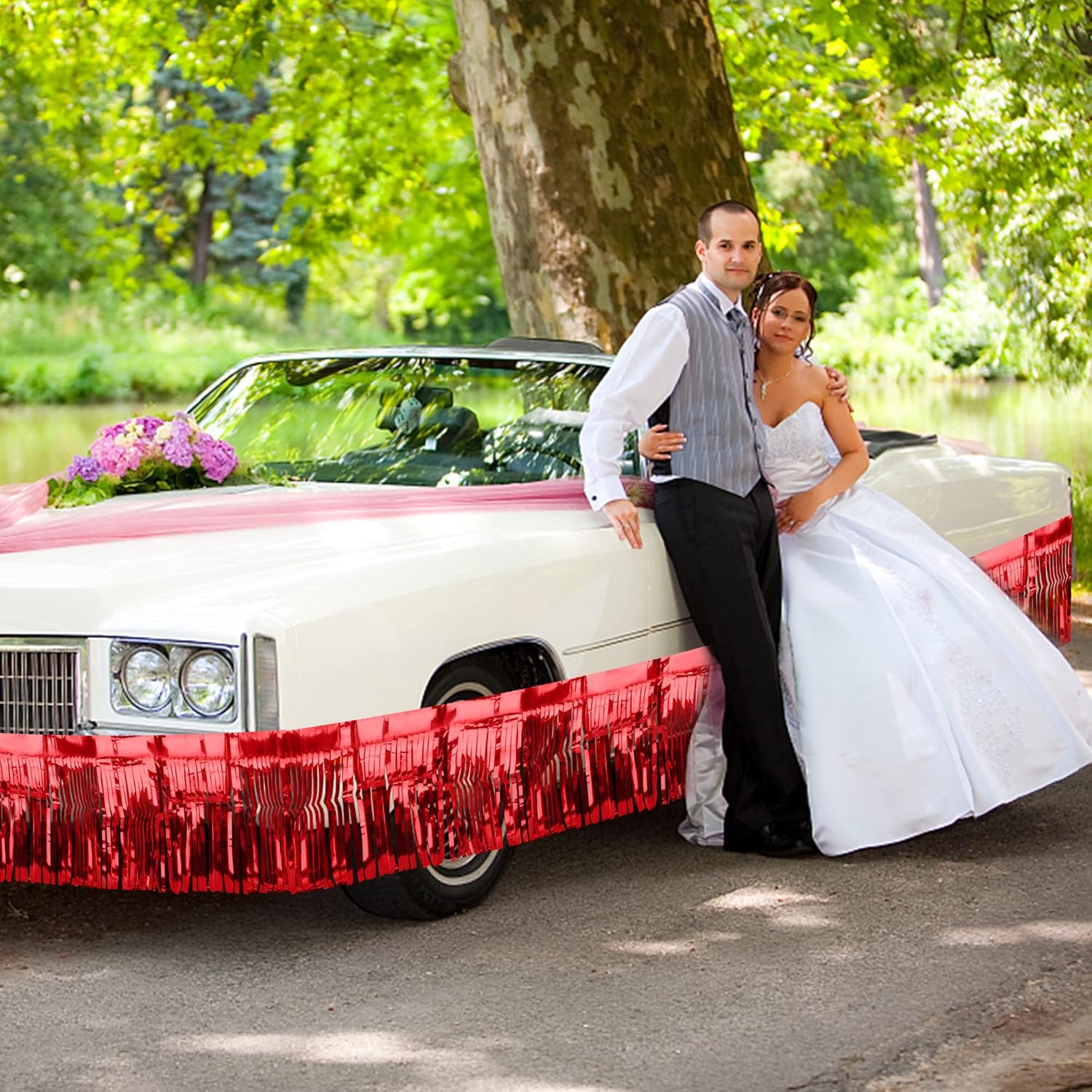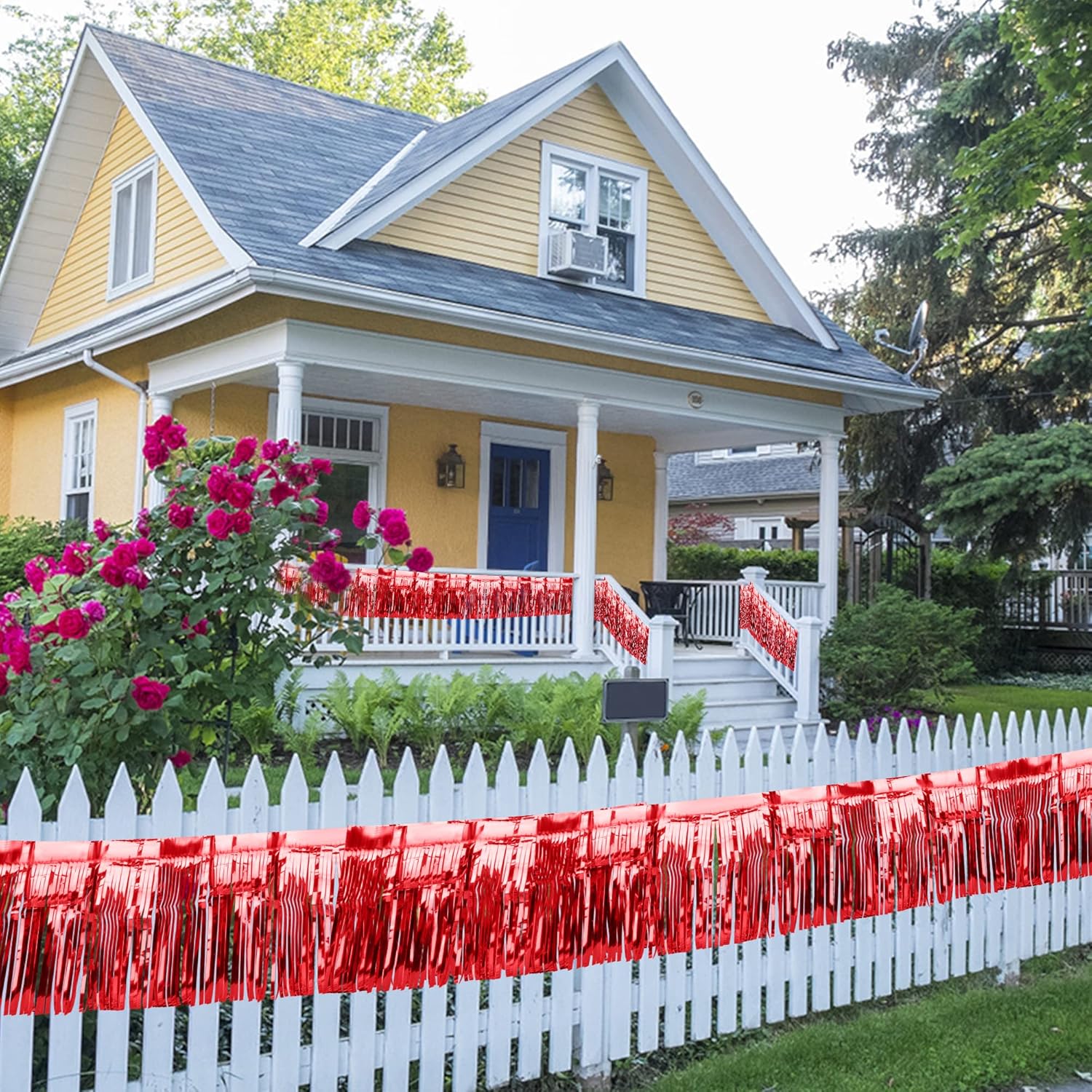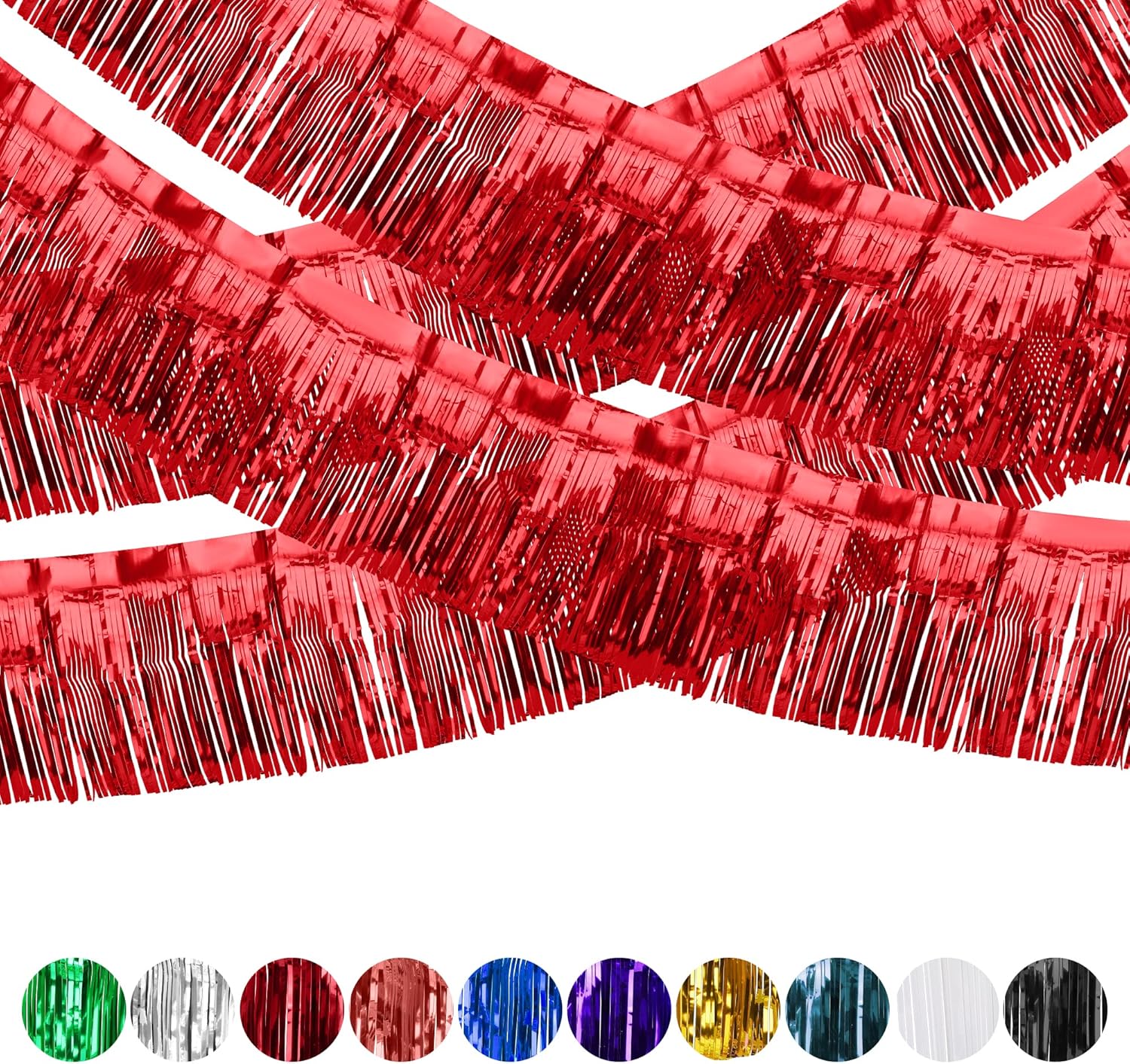 4 Pack Fringe Curtains, Metallic Foil Fringe Garland Shiny Tassel Float Parade Decorations for Trailer Car Graduation Homecoming Outdoor Indoor 4th of July Party (Red)